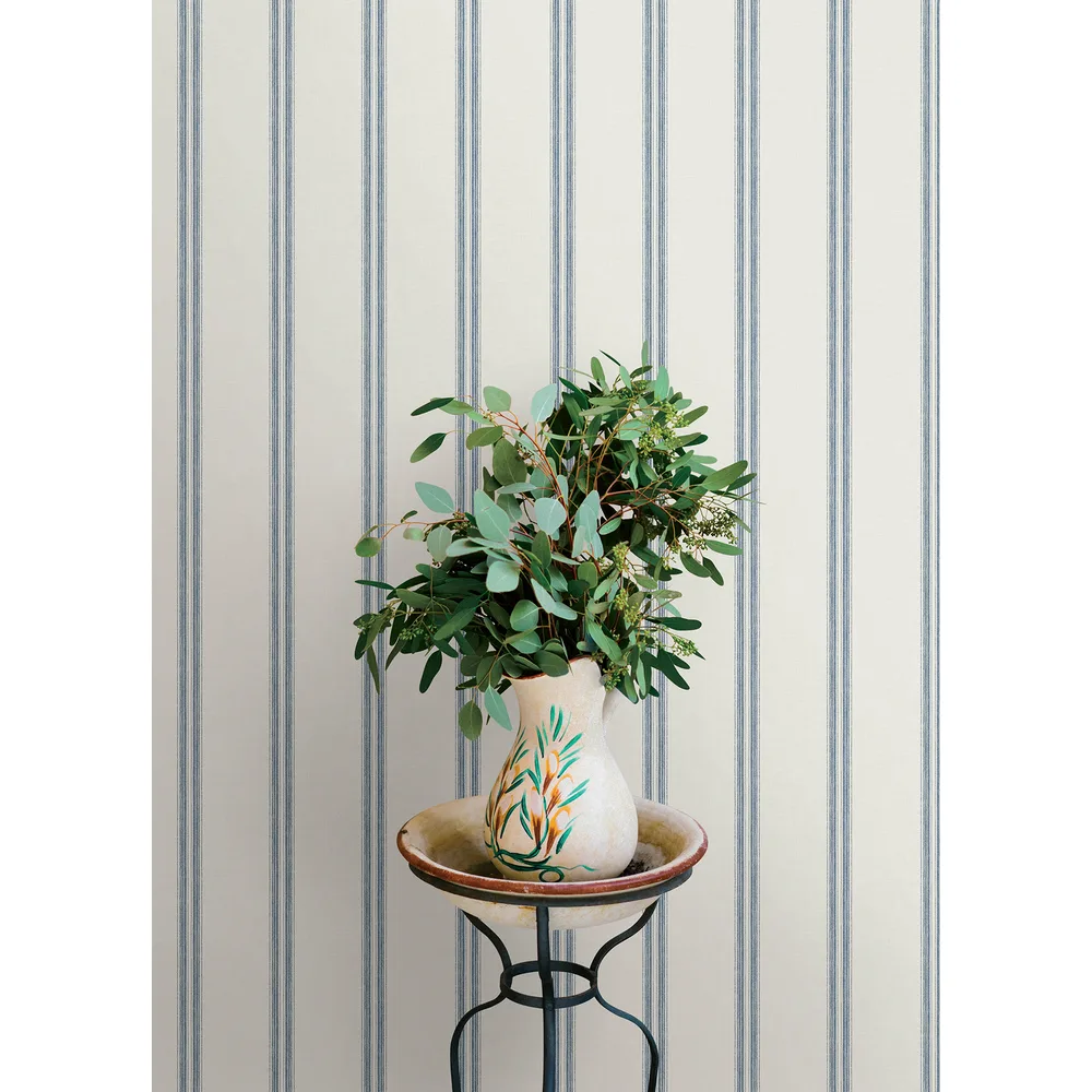 Chesapeake Oak & Moss | Johnny Blue Stripes Wallpaper