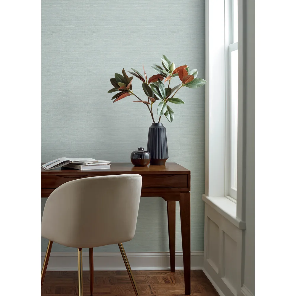 Chesapeake Oak & Moss | Agave Light Blue Faux Grasscloth Wallpaper
