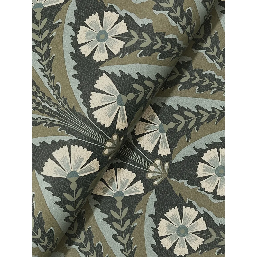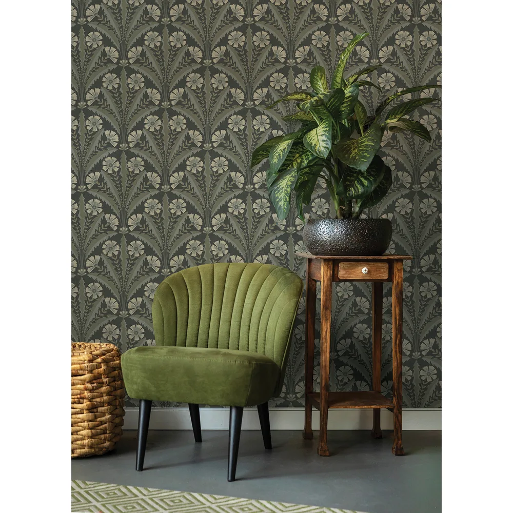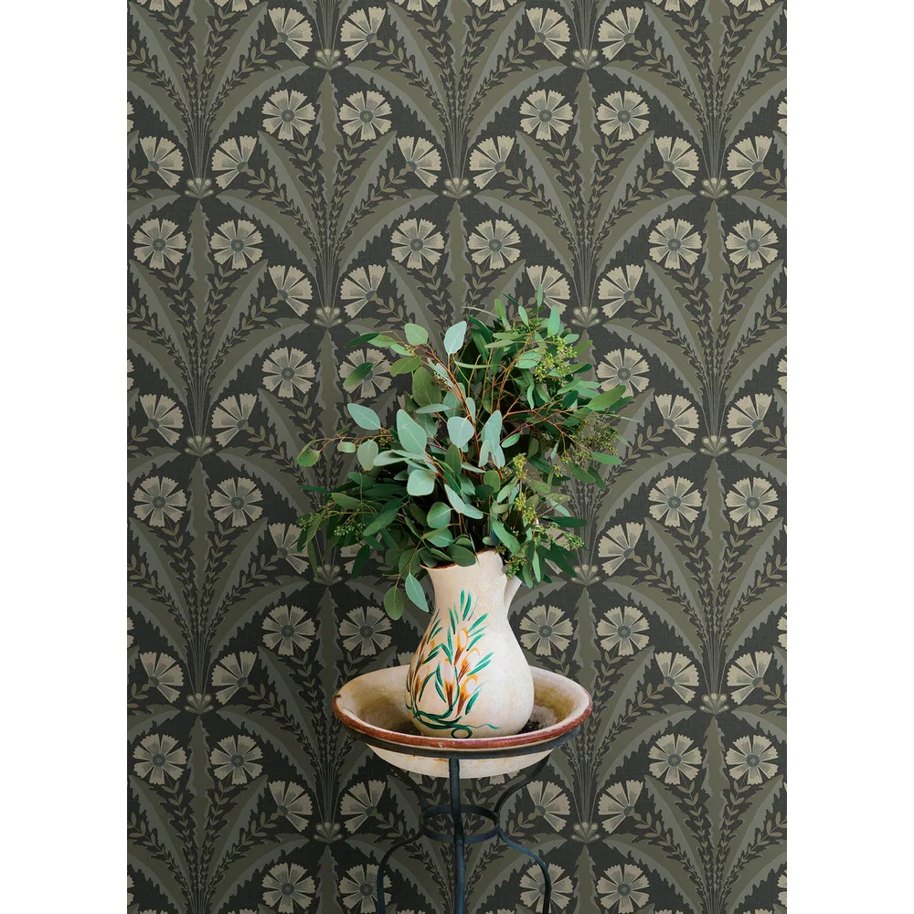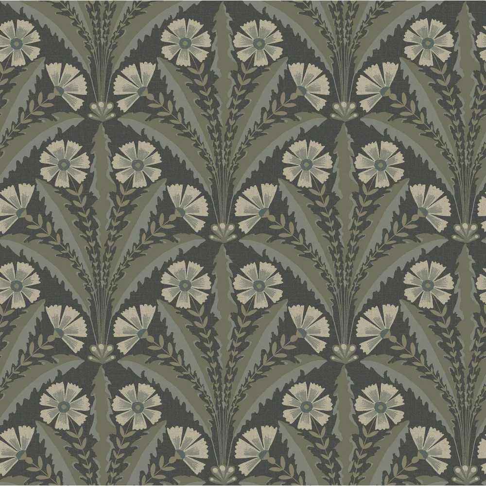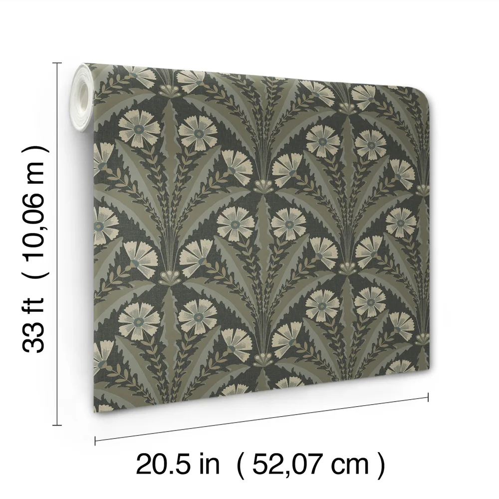 | Chesapeake Oak & Moss | Tap Root Charcoal Floral Damask Wallpaper Match: Straight Page: 70 Repeat: 10.25 Washable Roll is 20.5 Inches in width and 33 Feet in Length With About 56.4 square feet Coverage Unpasted Strippable Paste the Wall Colors: Greys Modern Flowers Botanical |