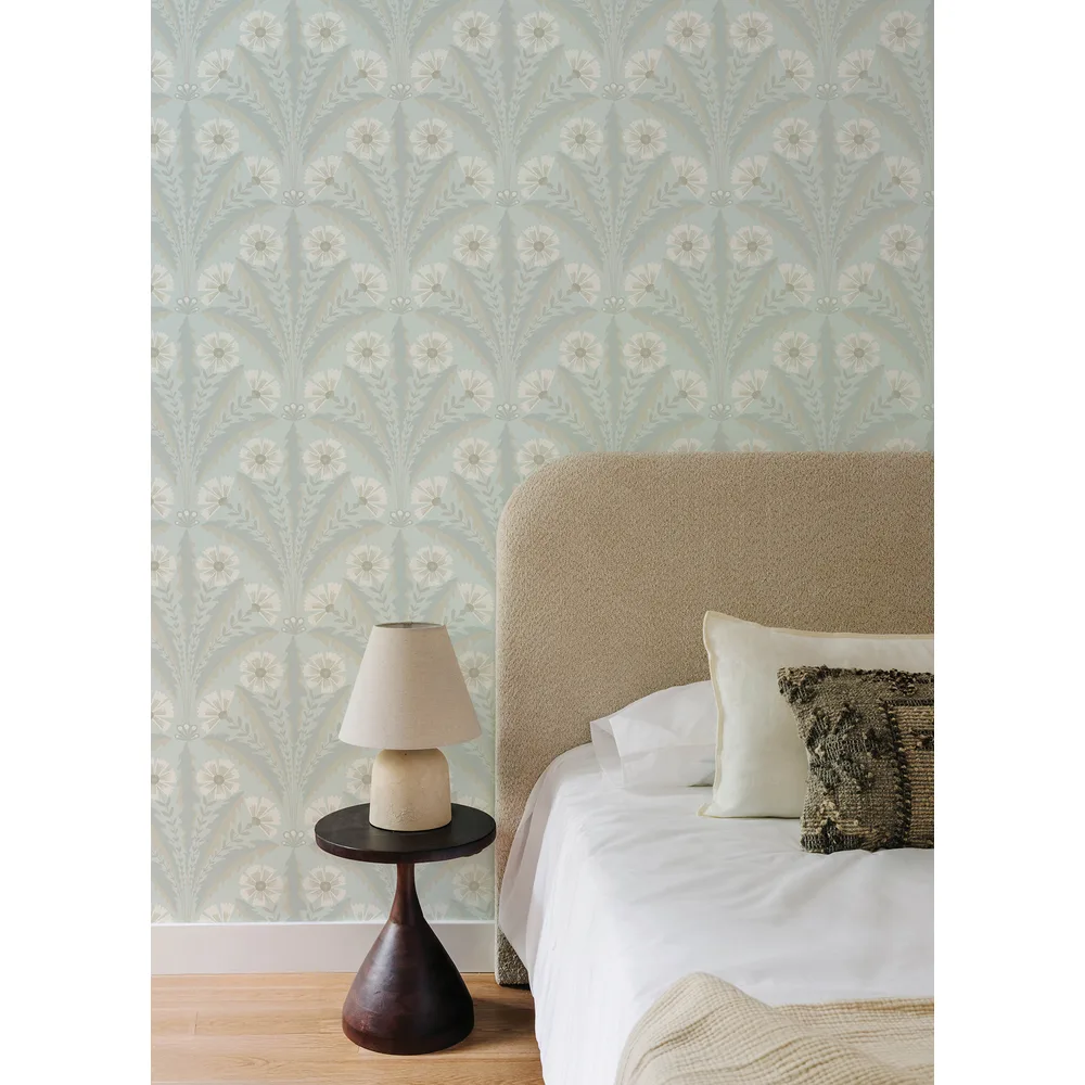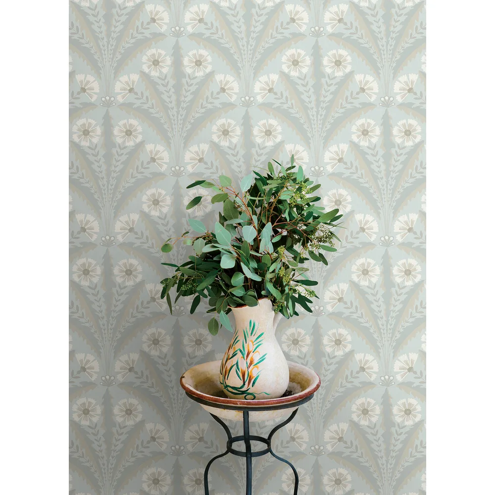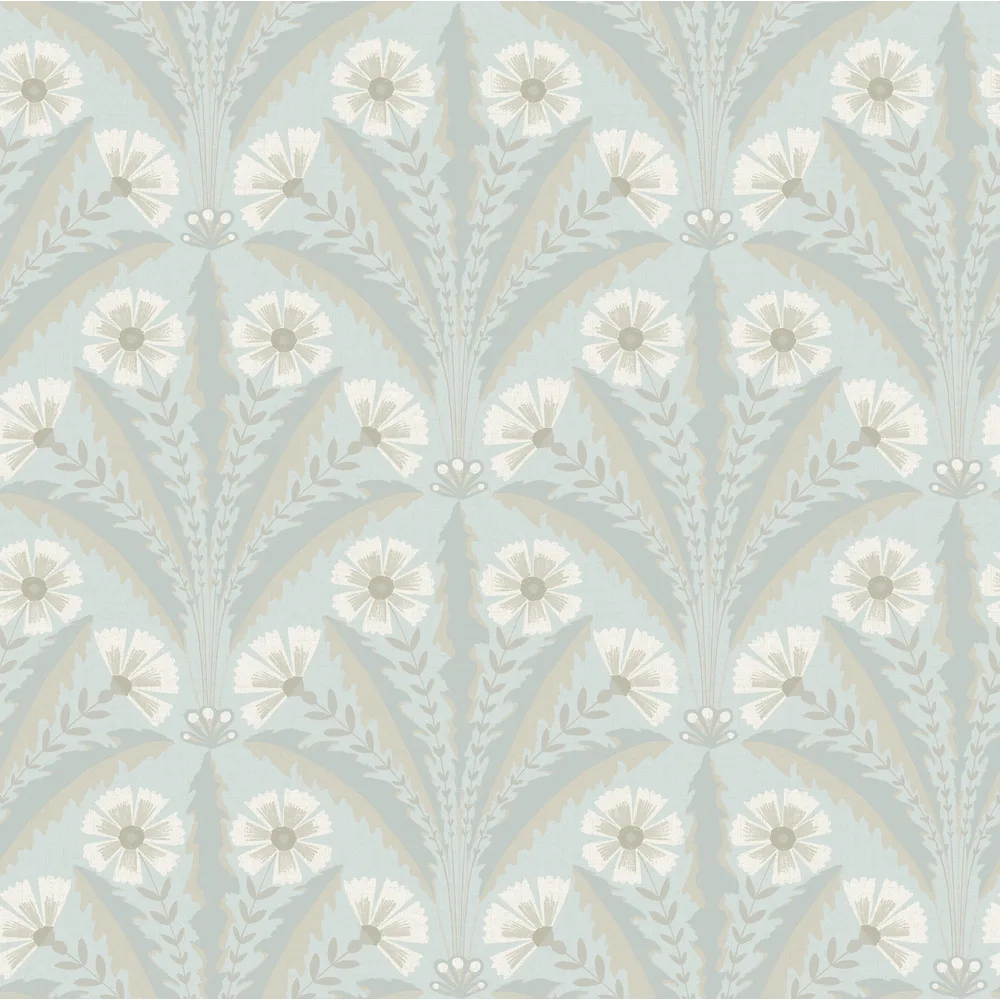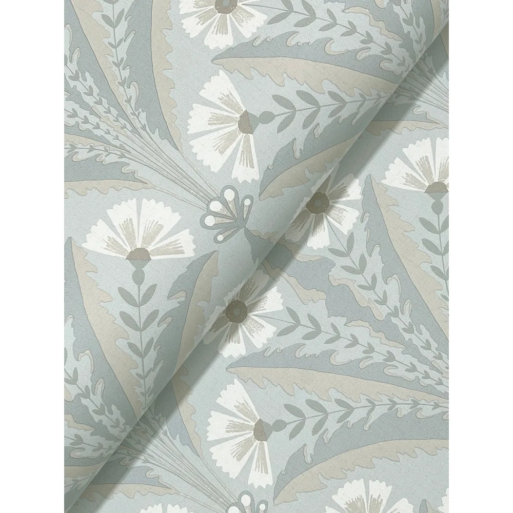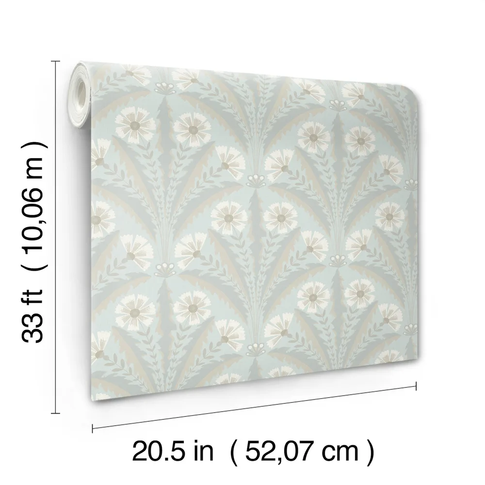 | Chesapeake Oak & Moss | Tap Root Light Blue Floral Damask Wallpaper Match: Straight Page: 72 Repeat: 10.25 Washable Roll is 20.5 Inches in width and 33 Feet in Length With About 56.4 square feet Coverage Unpasted Strippable Paste the Wall Colors: Blues Modern Flowers Botanical |