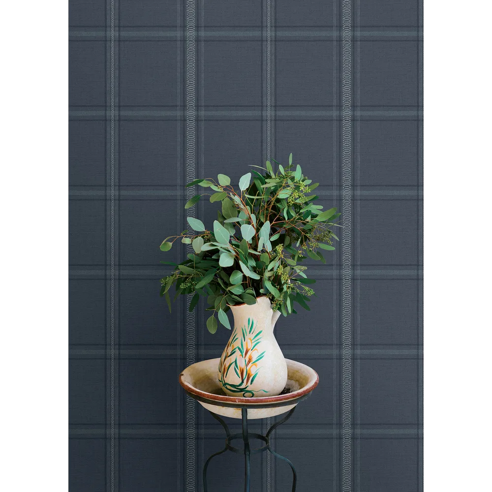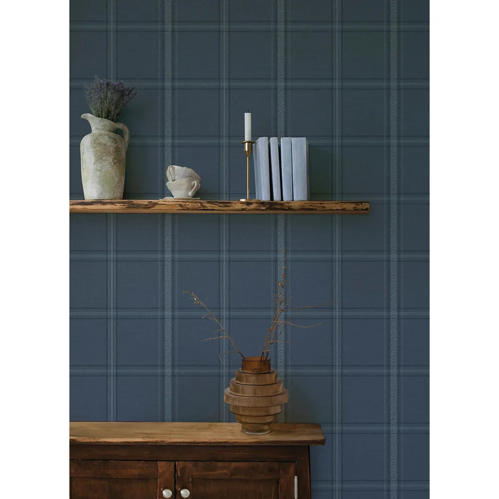 Chesapeake Oak & Moss | Auberge Dark Blue Plaid Wallpaper