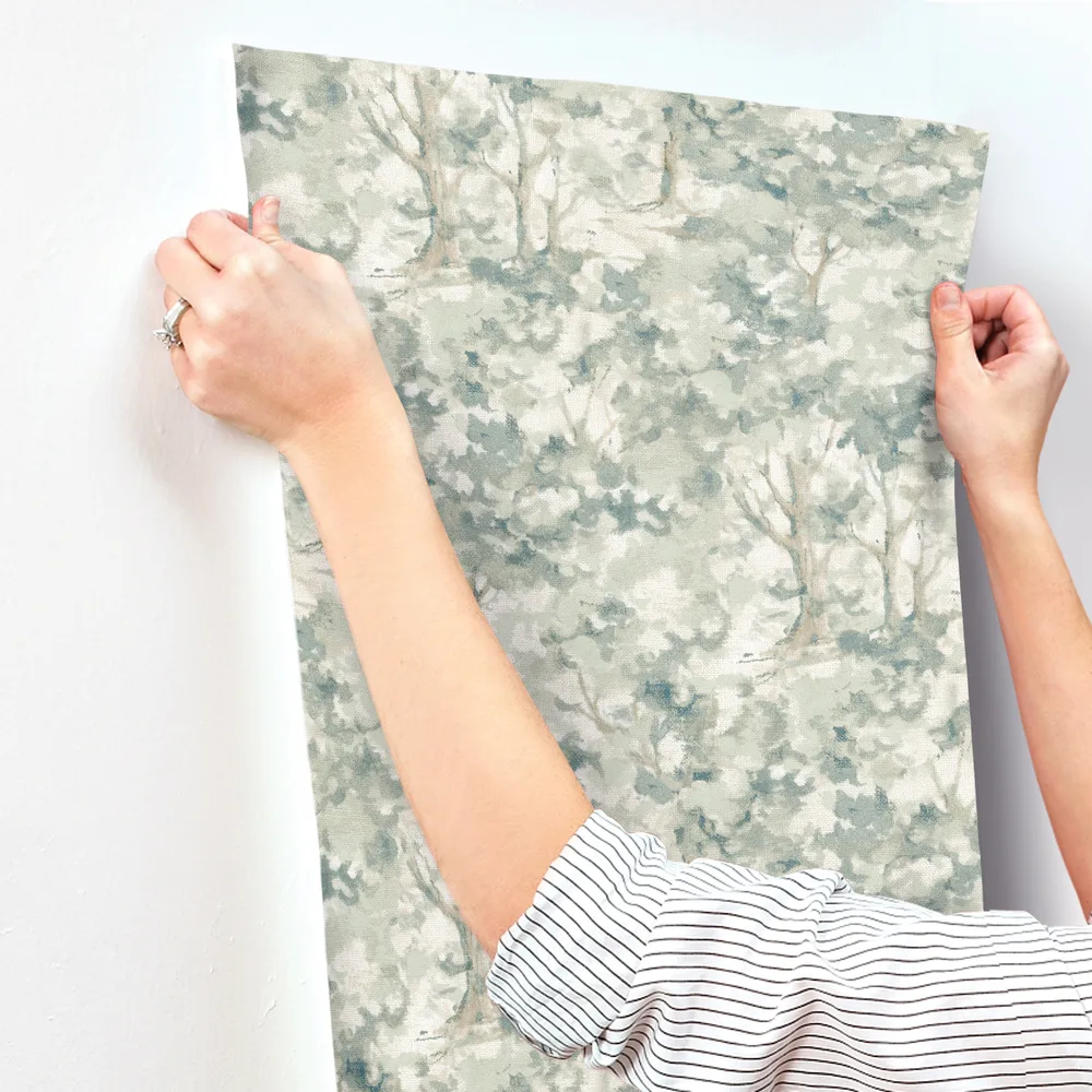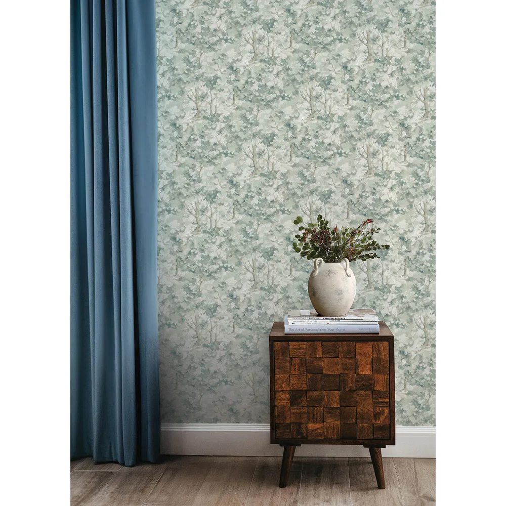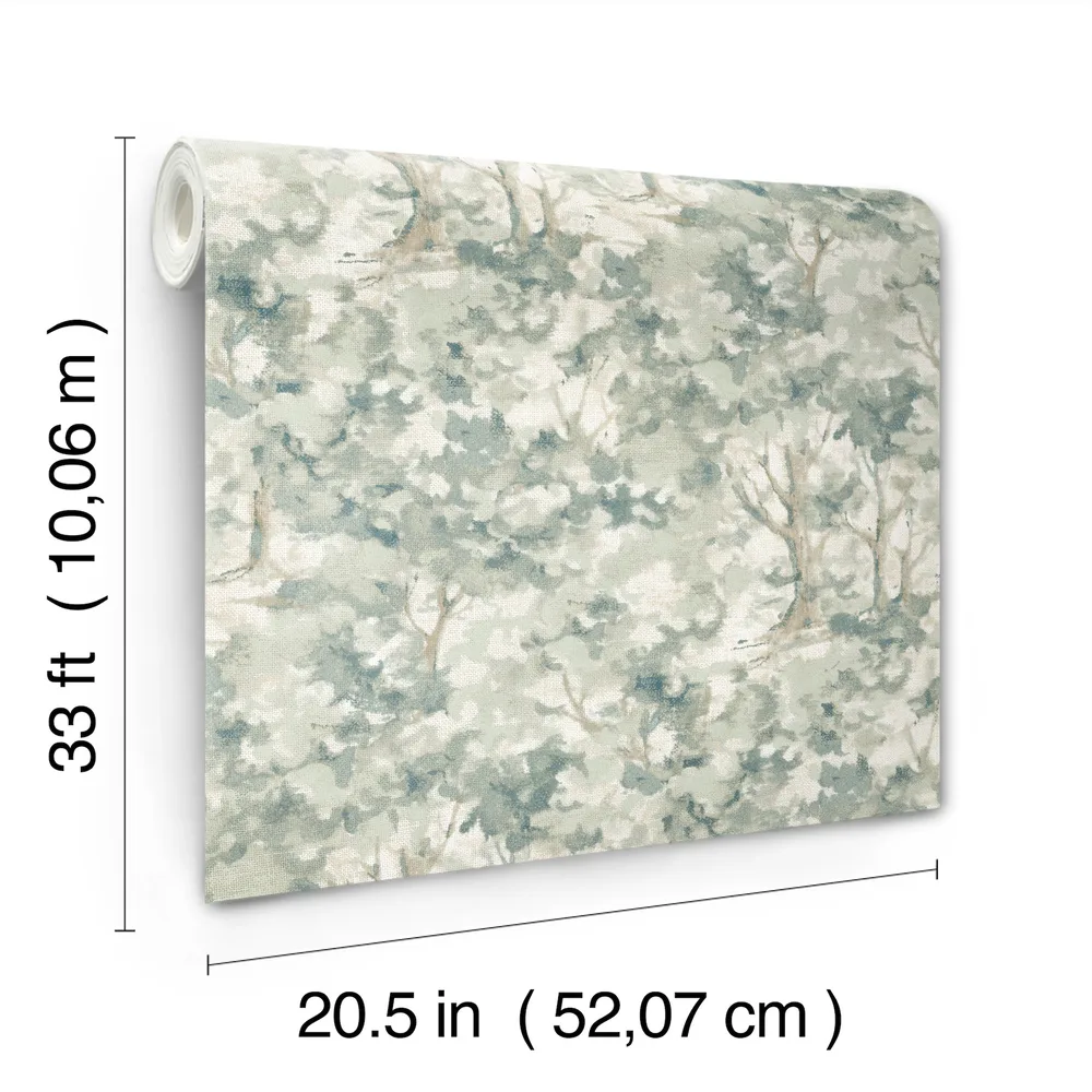 Chesapeake Oak & Moss | Thicket Teal Forest Wallpaper