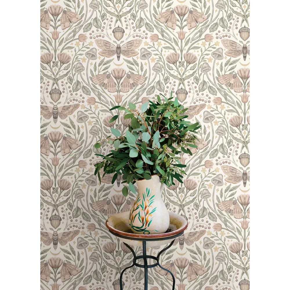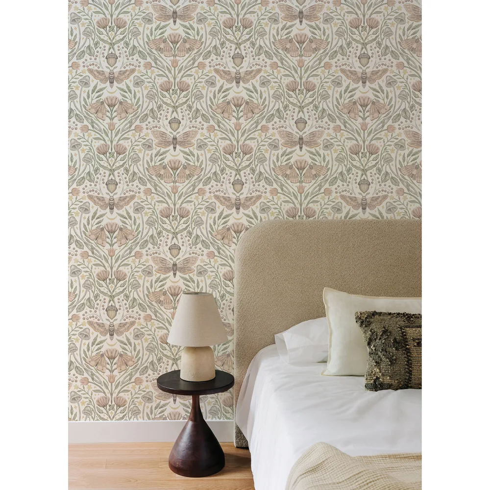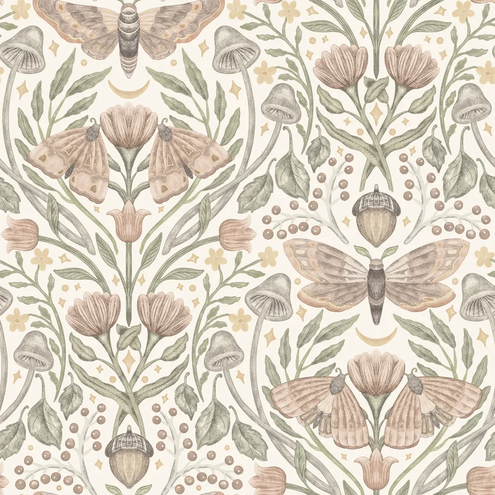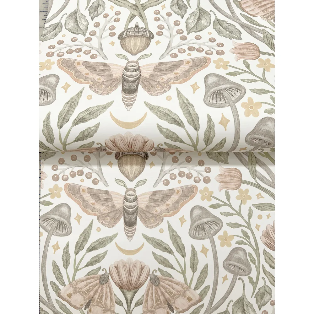 | Chesapeake Oak & Moss | Mystic Moth Blush Forest Magic Wallpaper Match: Straight Page: 29 Repeat: 20.5 Washable Roll is 20.5 Inches in width and 33 Feet in Length With About 56.4 square feet Coverage Prepasted Strippable Prepasted Colors: Pinks Eclectic Butterflies Animals |