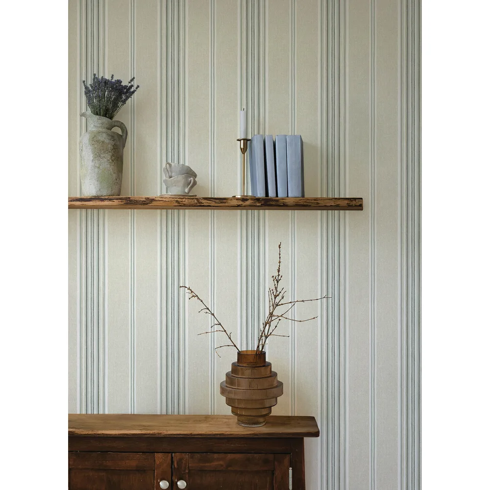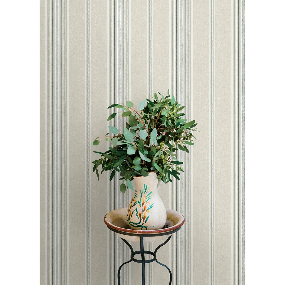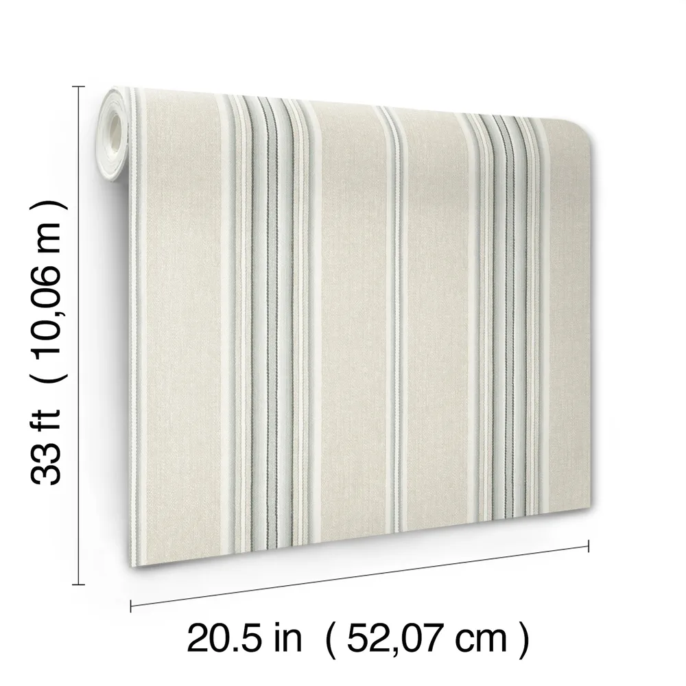 | Chesapeake Oak & Moss | Calvados Turquoise Linen Stripe Wallpaper Match: Random Page: 8 Repeat: 0 Washable Roll is 20.5 Inches in width and 33 Feet in Length With About 56.4 square feet Coverage Prepasted Strippable Prepasted Colors: Greys Farmhouse Stripes Graphics |