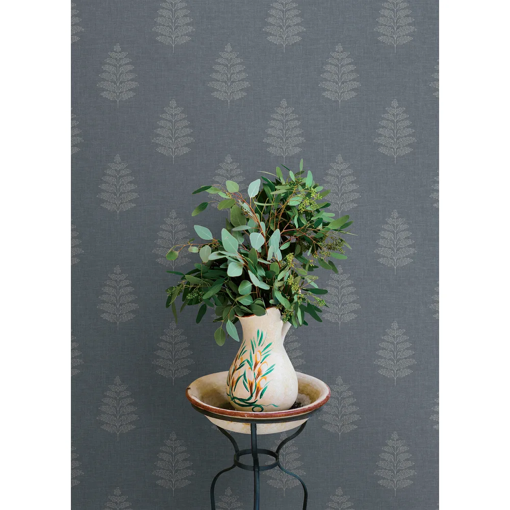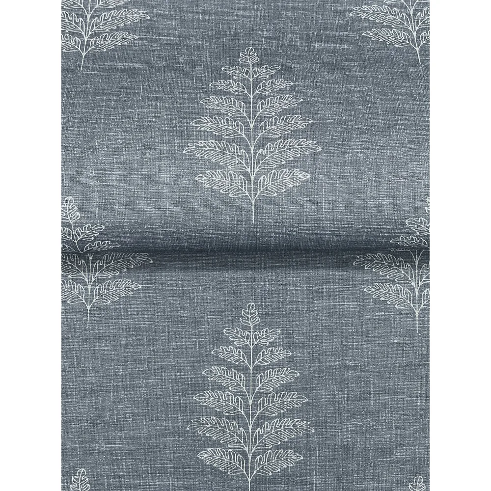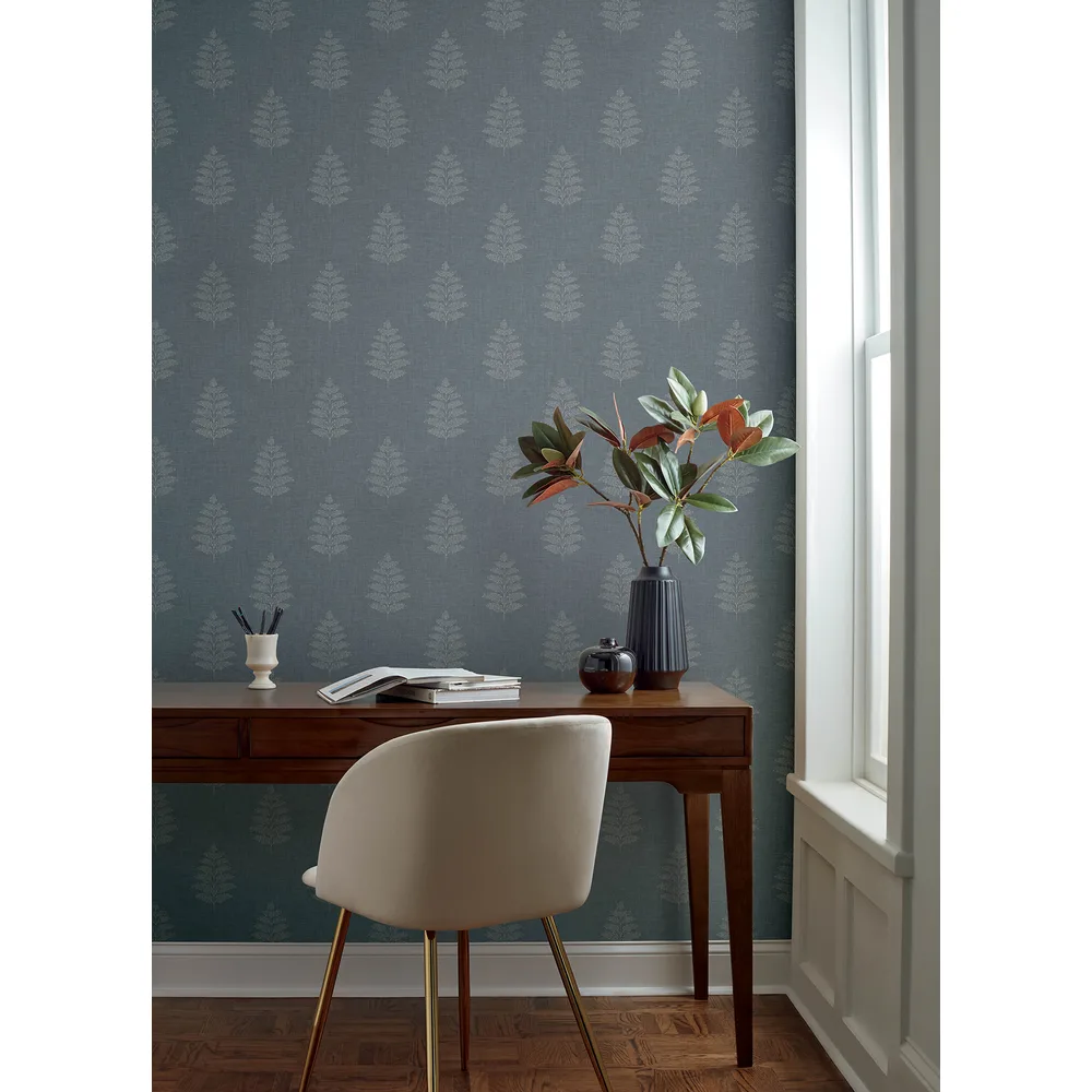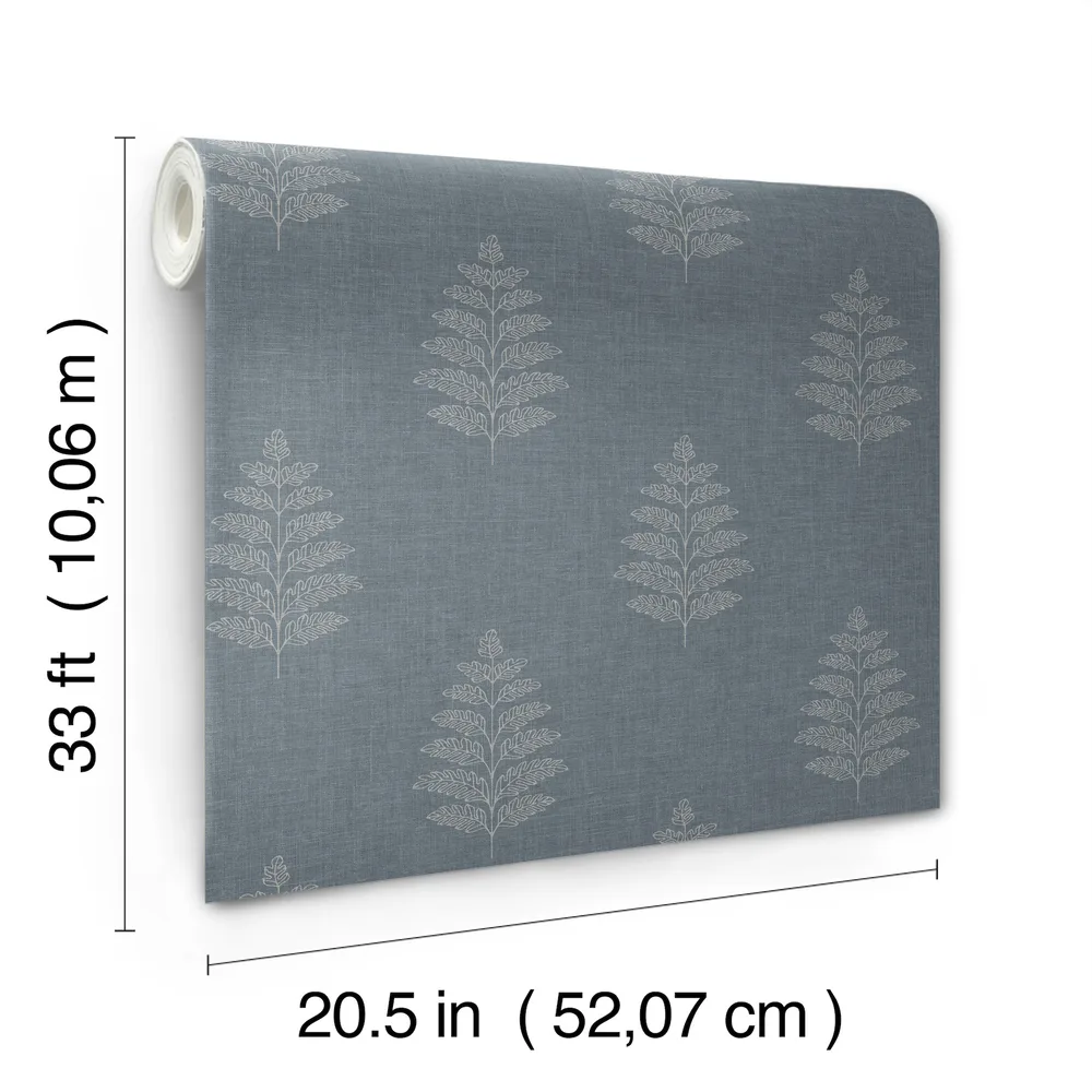 | Chesapeake Oak & Moss | Frond Denim Leaf Wallpaper Match: Straight Page: 36 Repeat: 10.25 Washable Roll is 20.5 Inches in width and 33 Feet in Length With About 56.4 square feet Coverage Prepasted Strippable Prepasted Colors: Blues Farmhouse Leaves Botanical |