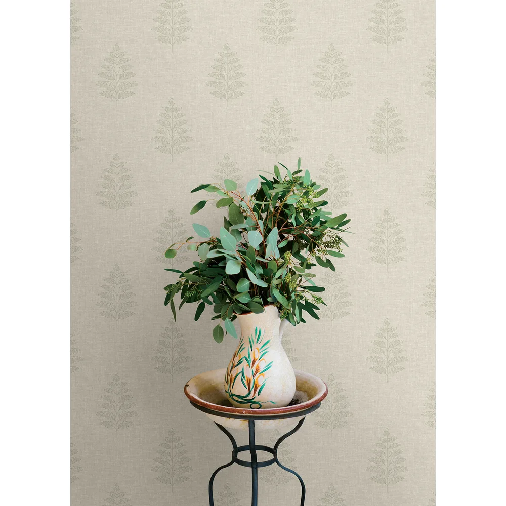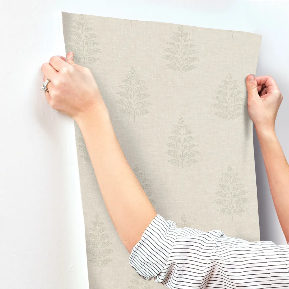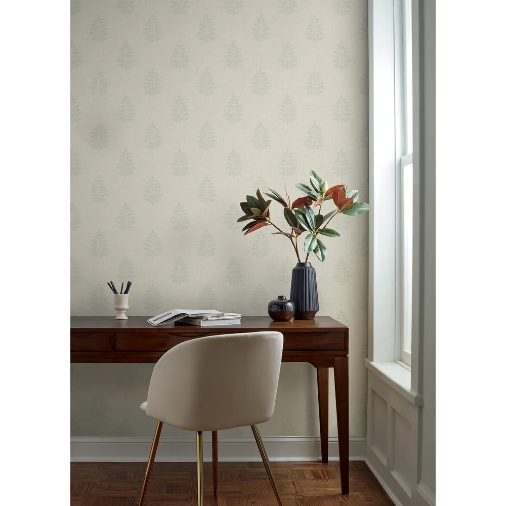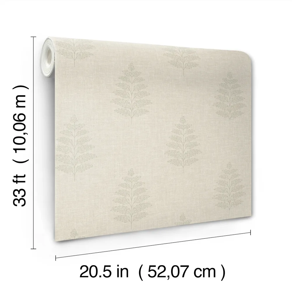 | Chesapeake Oak & Moss | Frond Beige Leaf Wallpaper Match: Straight Page: 42 Repeat: 10.25 Washable Roll is 20.5 Inches in width and 33 Feet in Length With About 56.4 square feet Coverage Prepasted Strippable Prepasted Colors: Neutrals Farmhouse Leaves Botanical |