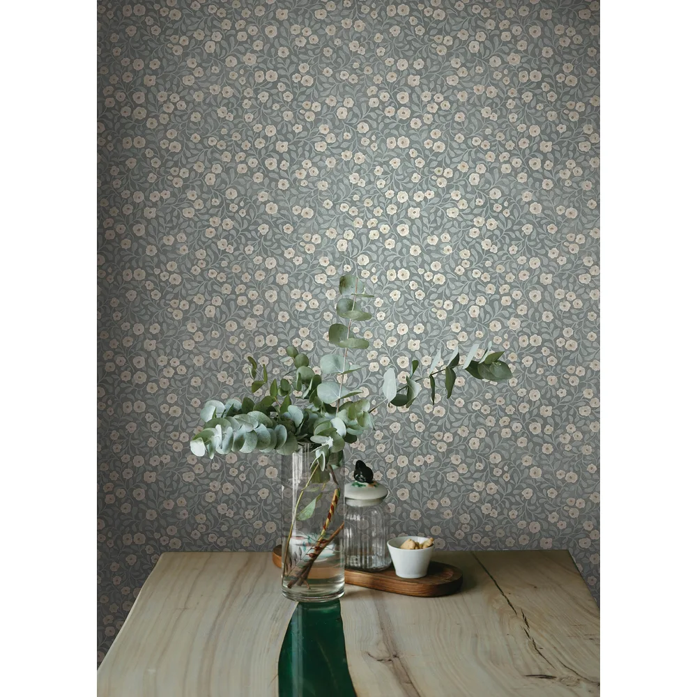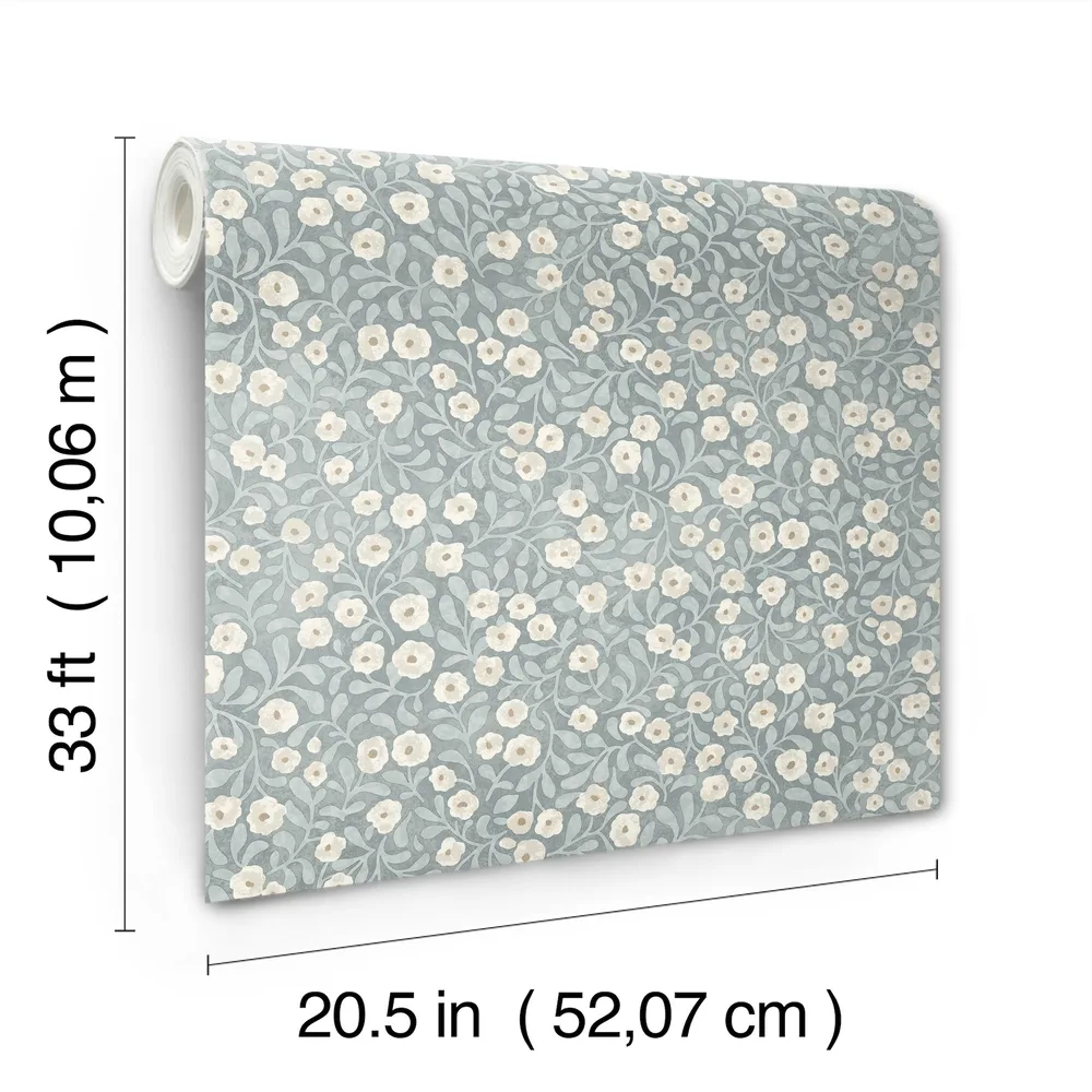 | Chesapeake Oak & Moss | Poppy Trail Light Blue Floral Wallpaper Match: Straight Page: 24 Repeat: 20.5 Washable Roll is 20.5 Inches in width and 33 Feet in Length With About 56.4 square feet Coverage Prepasted Strippable Prepasted Colors: Blues Farmhouse Flowers Botanical |