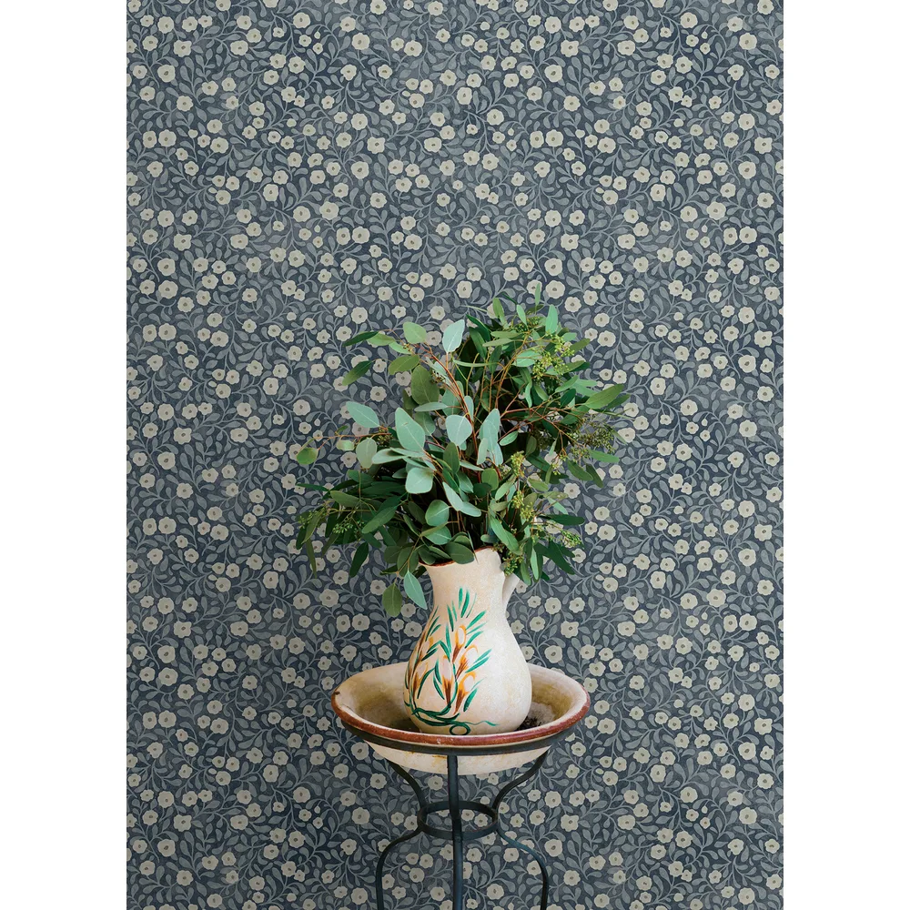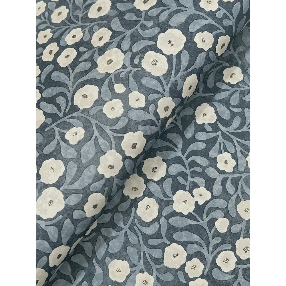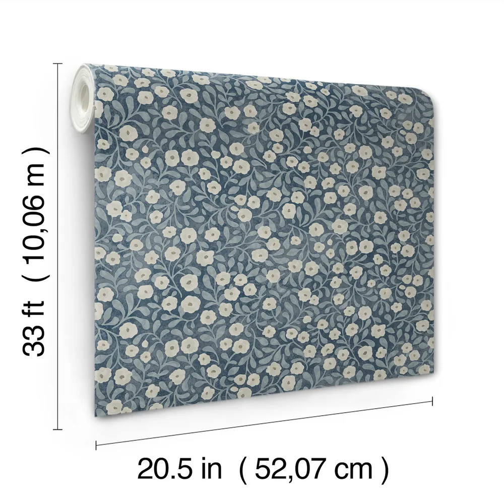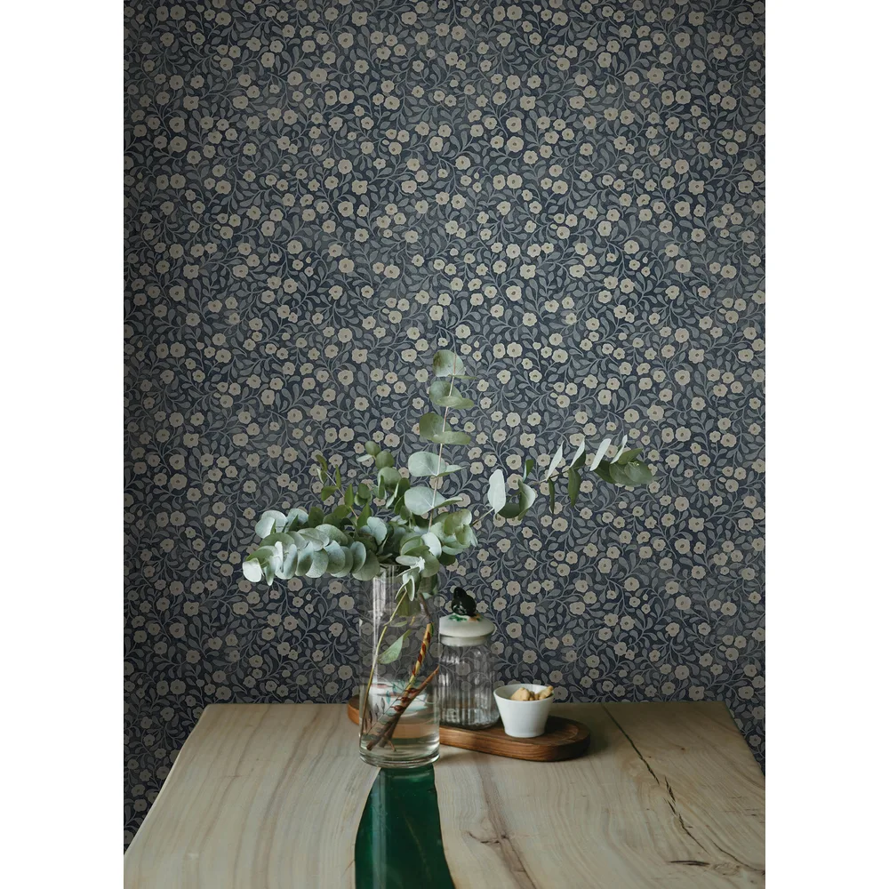 Chesapeake Oak & Moss | Poppy Trail Dark Blue Floral Wallpaper