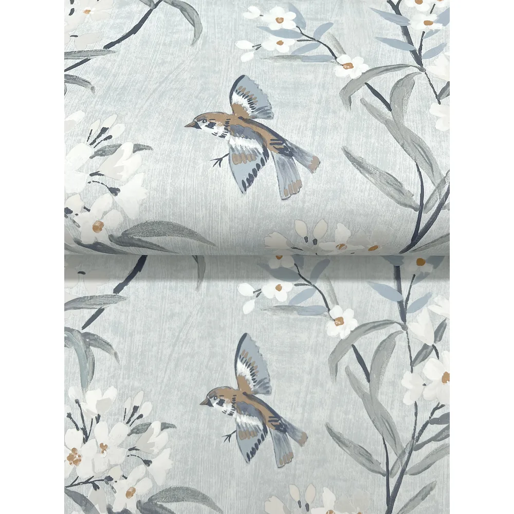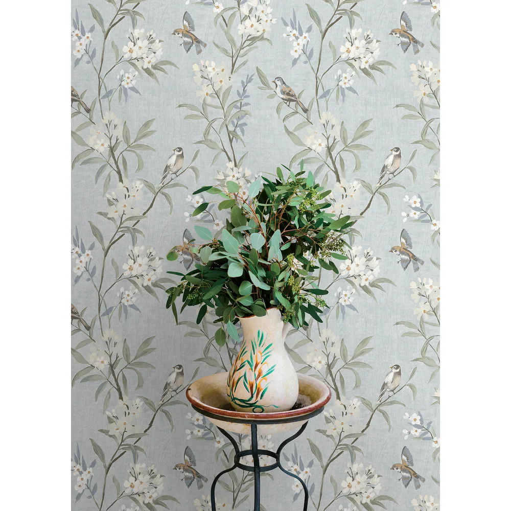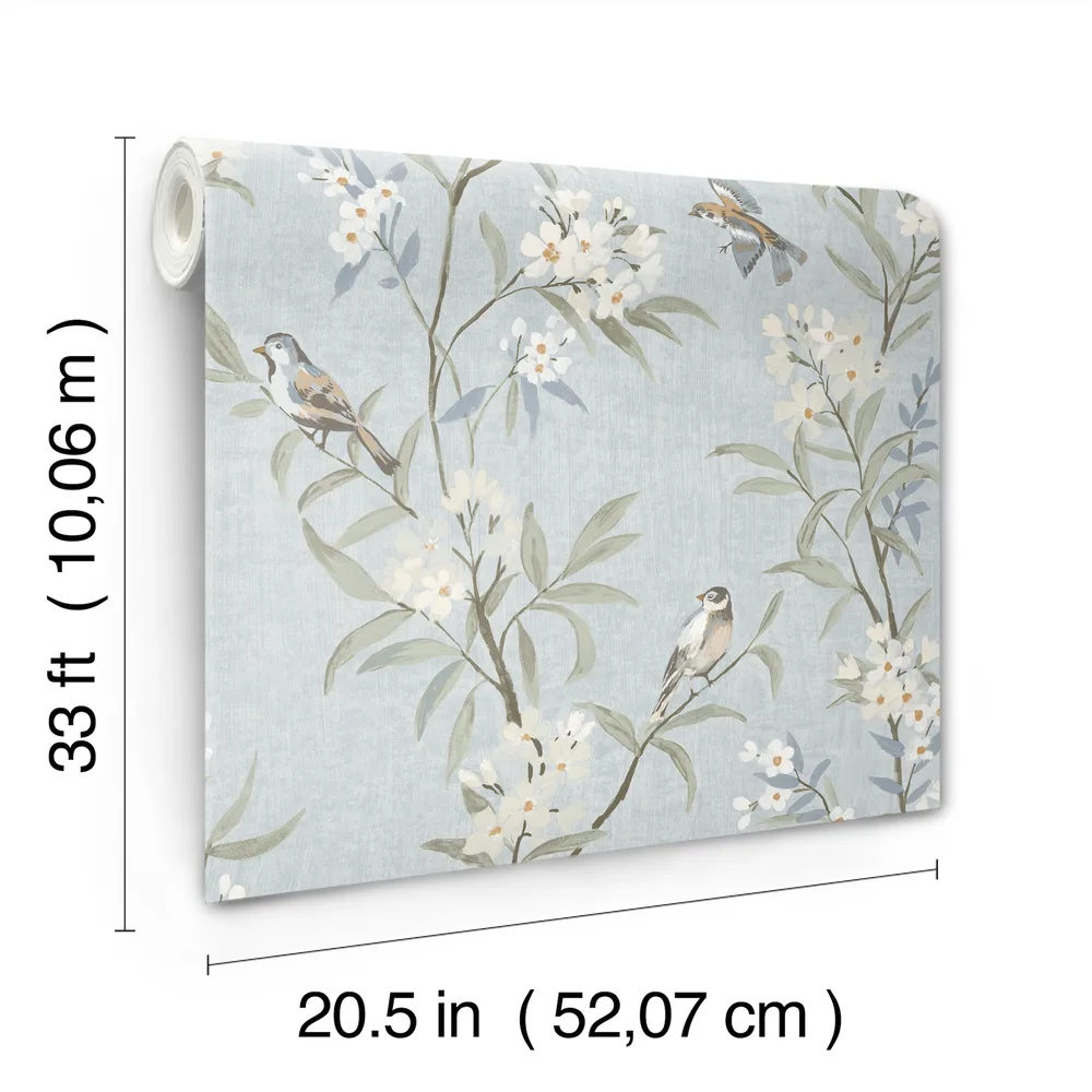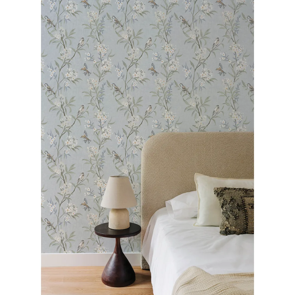 | Chesapeake Oak & Moss | Tea Olive Light Blue Finch Frolic Wallpaper Match: Straight Page: 65 Repeat: 20.5 Washable Roll is 20.5 Inches in width and 33 Feet in Length With About 56.4 square feet Coverage Prepasted Strippable Prepasted Colors: Blues Transitional Birds Animals |