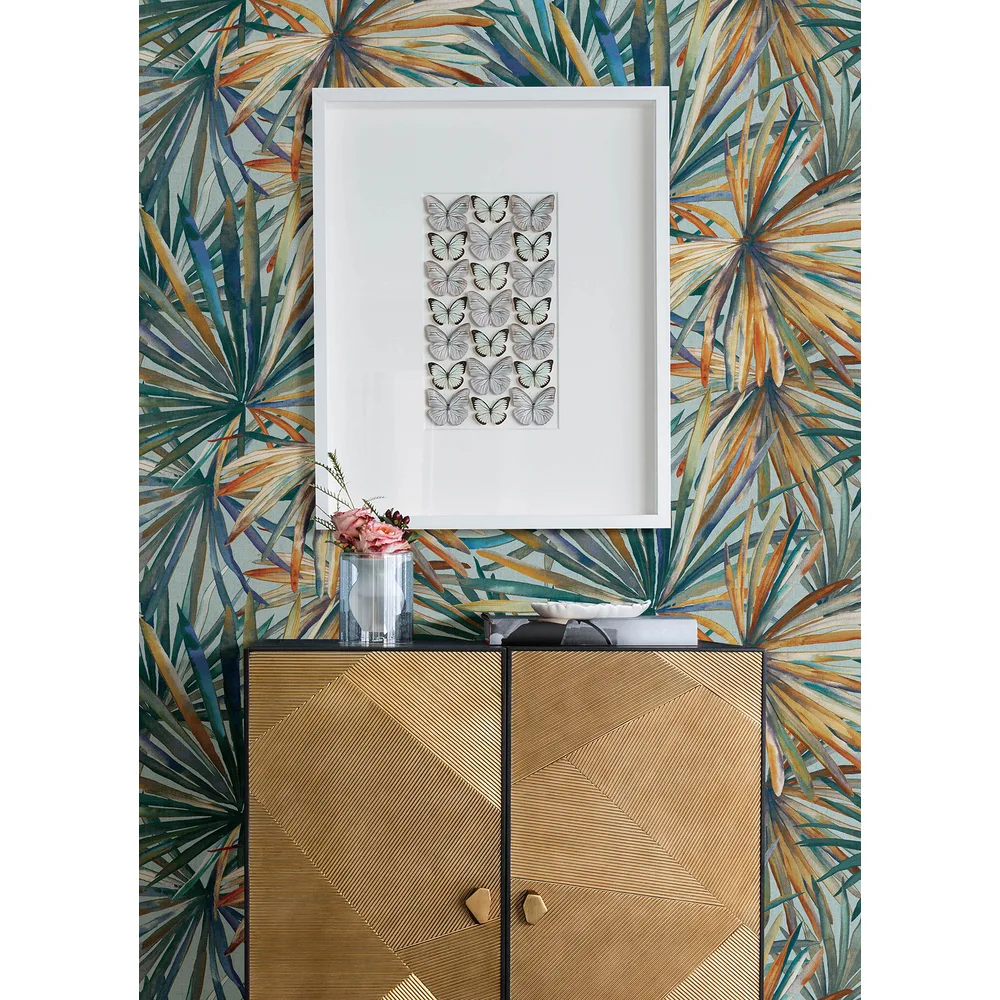 | A-Street Prints Portofino | Corifa Sea Green Palm Leaf Wallpaper Match: Drop Page: 34 Repeat: 27.56 Extra Washable Roll is 27.55 Inches in width and 33 Feet in Length With About 75.8 square feet Coverage Unpasted Strippable Paste the Wall Colors: Blues Tropical Leaves Botanical |