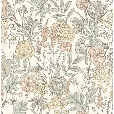 | Chesapeake PrintWorks | Goldfinch Peach Birds and Blooms Wallpaper Match: Straight Page: 11 Repeat: 20.9 Washable Roll is 20.5 Inches in width and 33 Feet in Length With About 56.4 square feet Coverage Unpasted Strippable Paste the Wall Colors: Pastels Farmhouse Birds Animals |