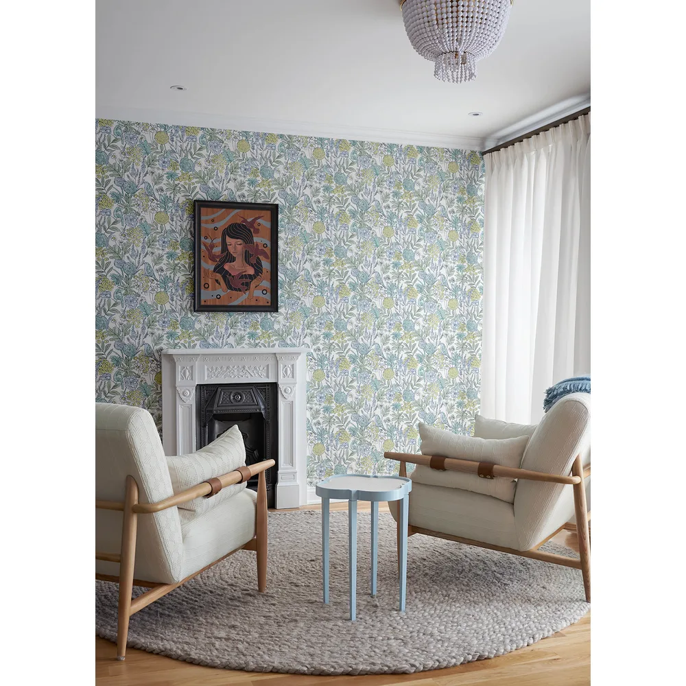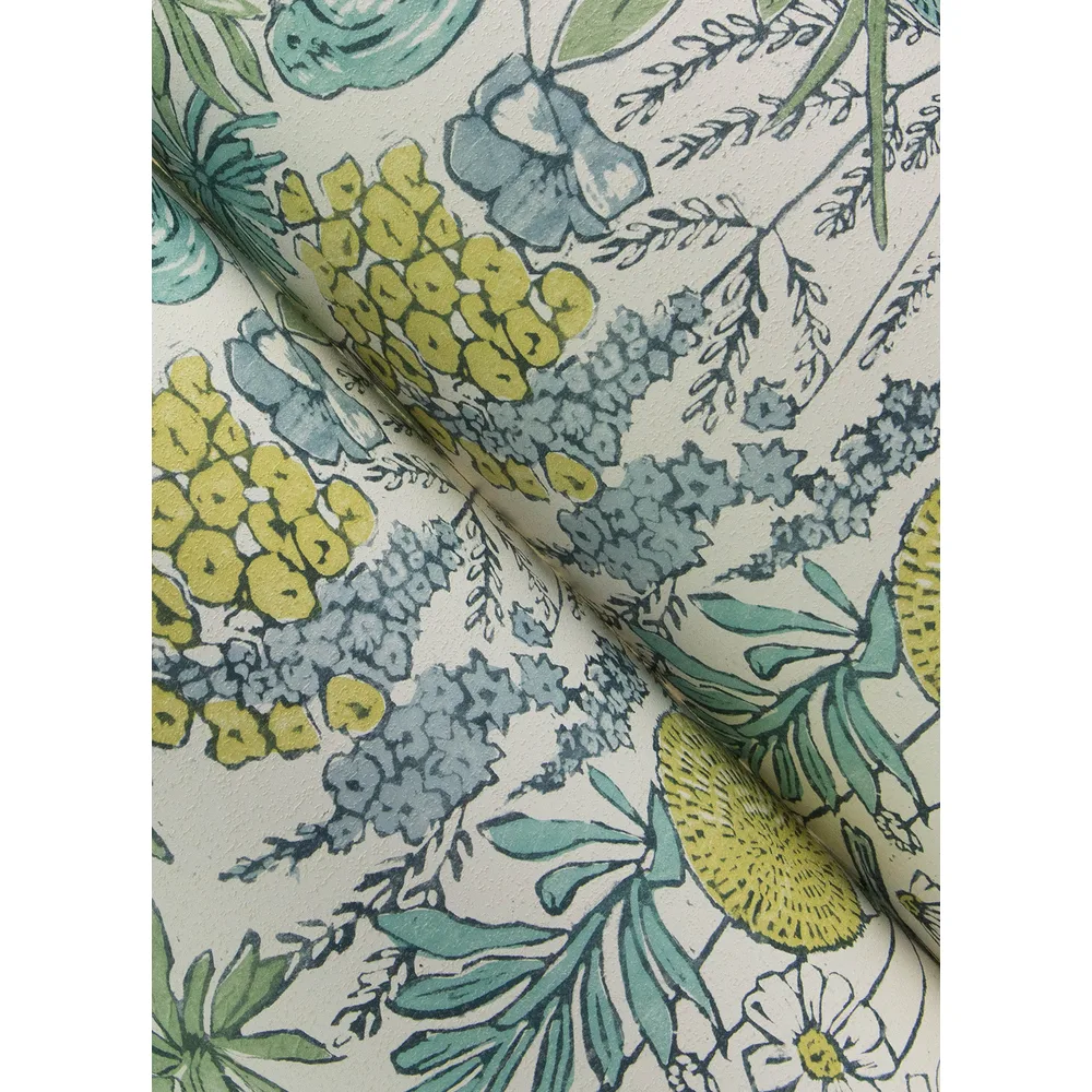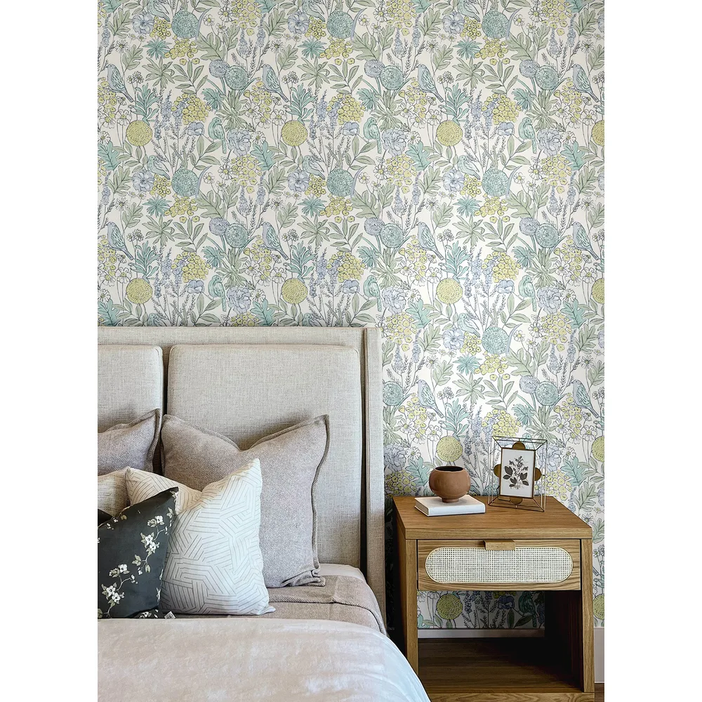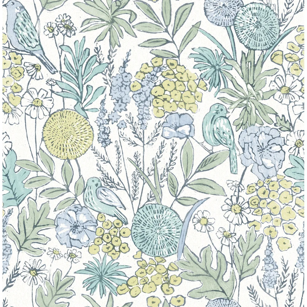 Chesapeake PrintWorks | Goldfinch Aqua Birds and Blooms Wallpaper