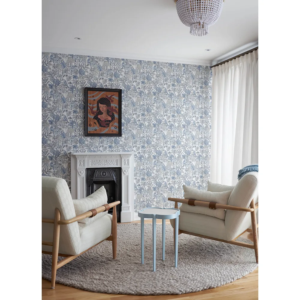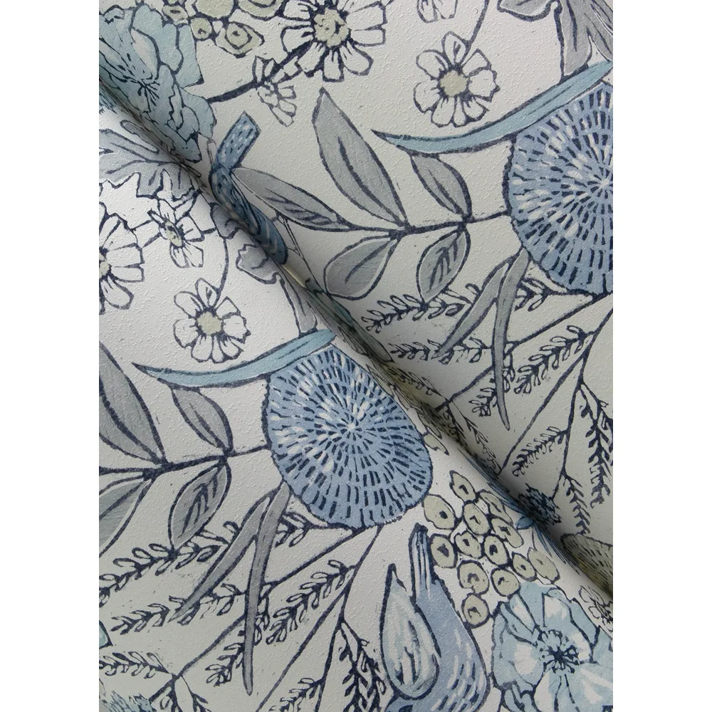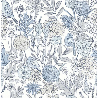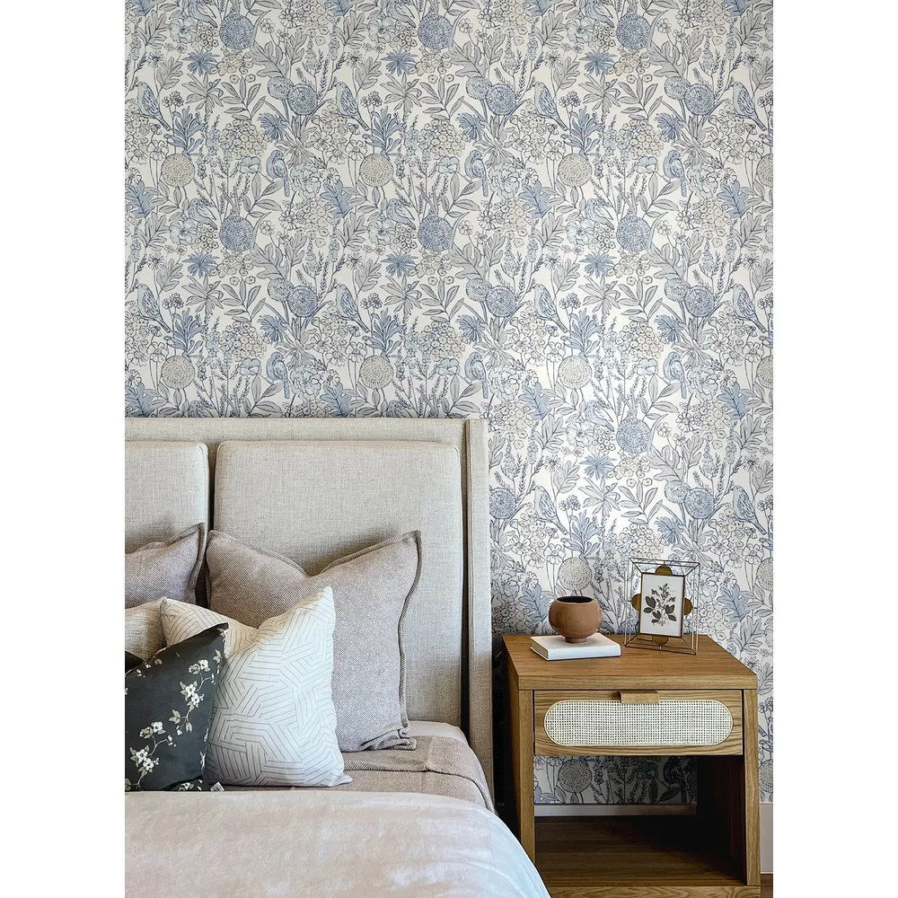 Chesapeake PrintWorks | Goldfinch Blue Birds and Blooms Wallpaper