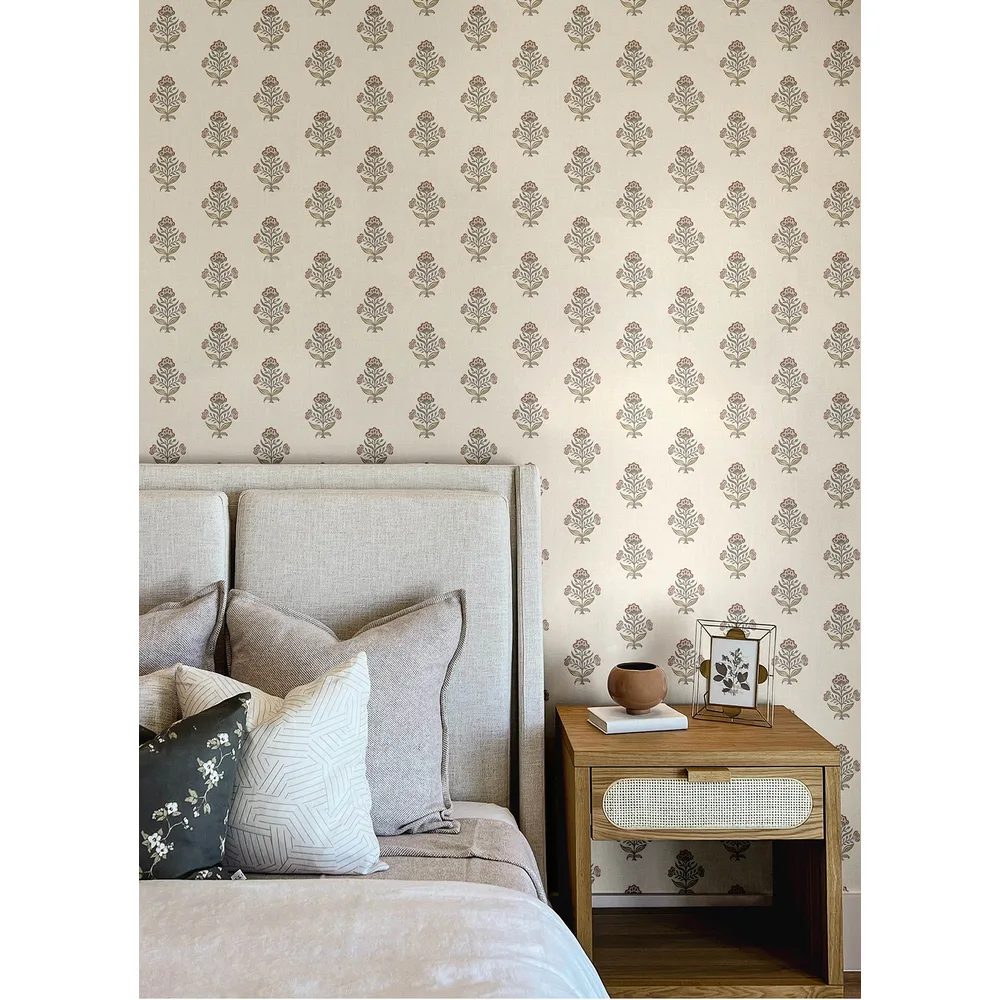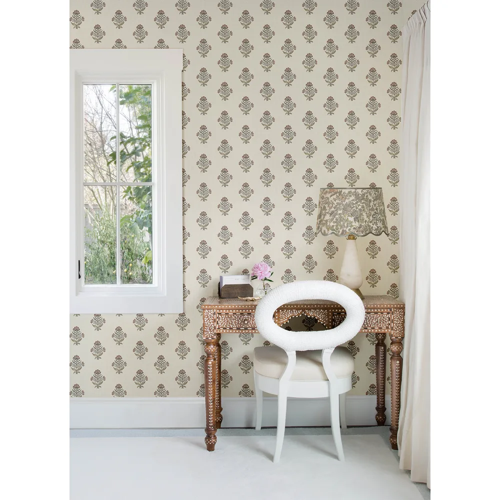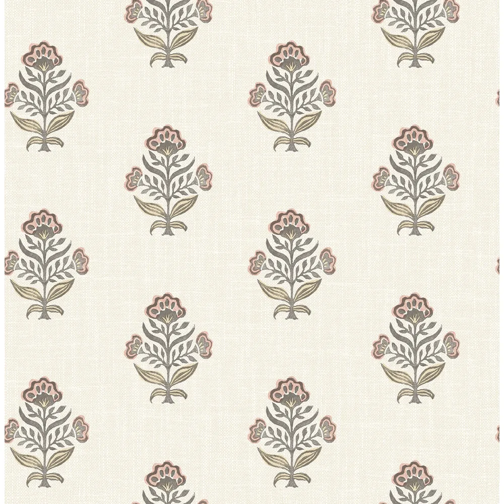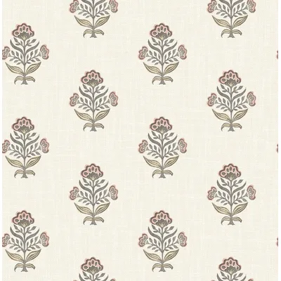 | Chesapeake PrintWorks | Hollyhock Rust Floral Crest Wallpaper Match: Straight Page: 33 Repeat: 20.9 Washable Roll is 20.5 Inches in width and 33 Feet in Length With About 56.4 square feet Coverage Unpasted Strippable Paste the Wall Colors: Reds Farmhouse Flowers Botanical |