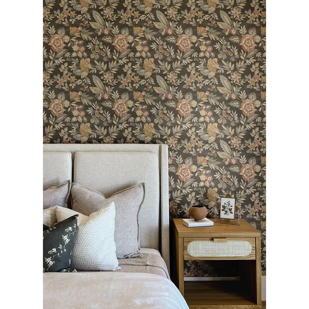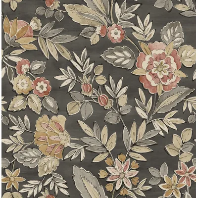 | Chesapeake PrintWorks | Begonia Black Floral Trail Wallpaper Match: Straight Page: 69 Repeat: 20.9 Washable Roll is 20.5 Inches in width and 33 Feet in Length With About 56.4 square feet Coverage Unpasted Strippable Paste the Wall Colors: Blacks Modern Flowers Botanical |