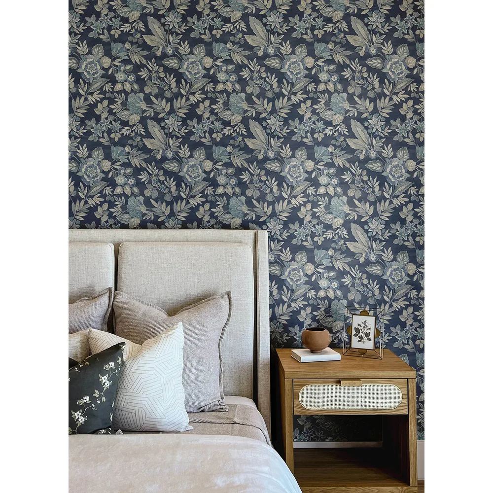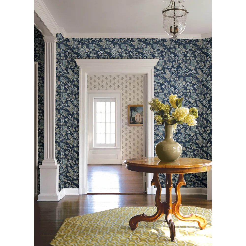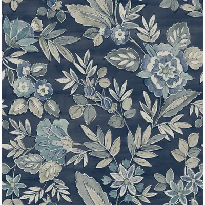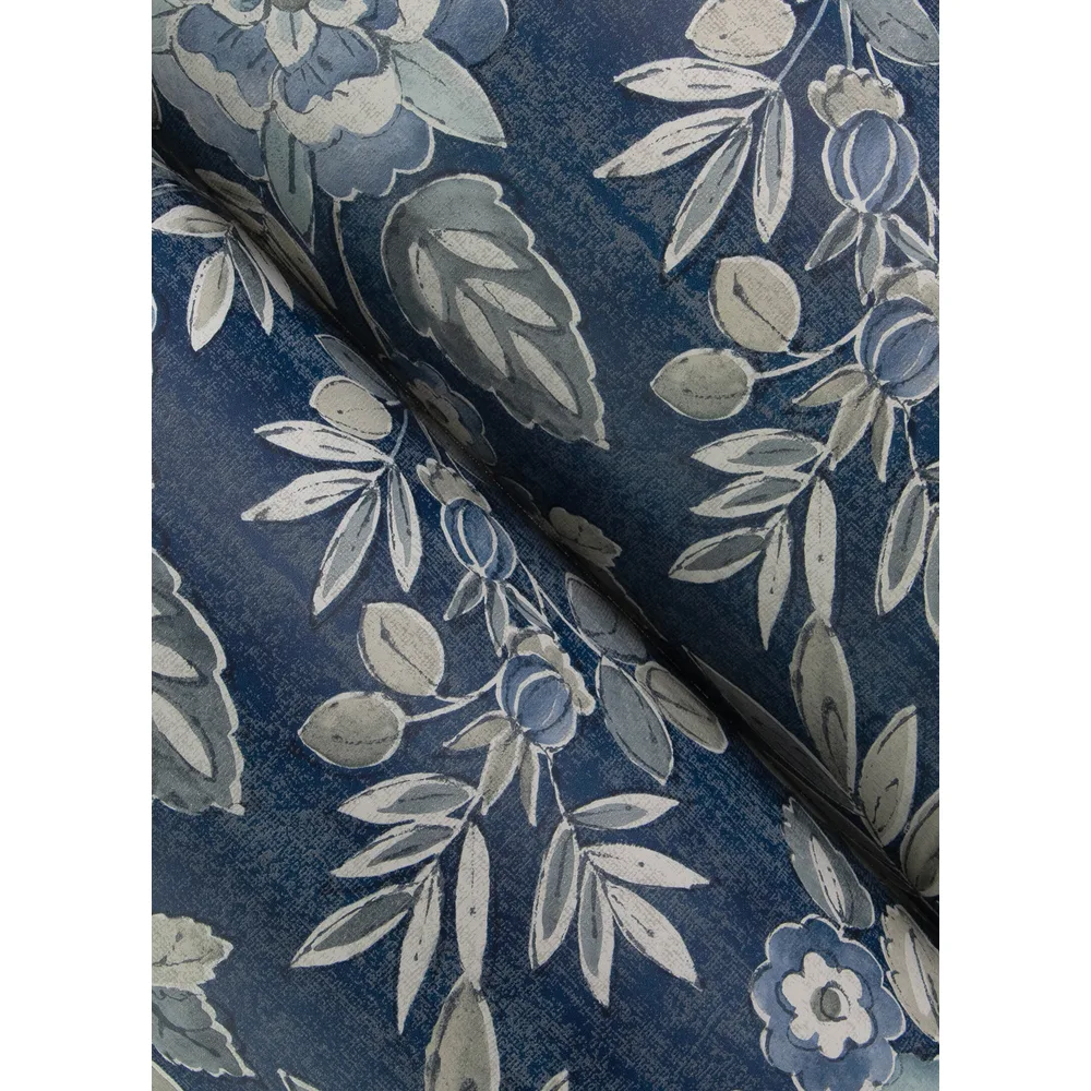 | Chesapeake PrintWorks | Begonia Indigo Floral Trail Wallpaper Match: Straight Page: 65 Repeat: 20.9 Washable Roll is 20.5 Inches in width and 33 Feet in Length With About 56.4 square feet Coverage Unpasted Strippable Paste the Wall Colors: Blues Modern Flowers Botanical |