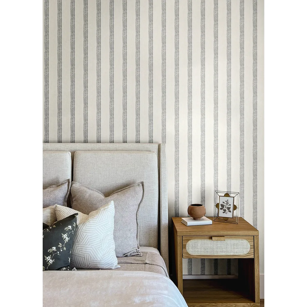 | Chesapeake PrintWorks | Mandevilla Black Vine Stripe Wallpaper Match: Random Page: 25 Repeat: 0 Washable Roll is 20.5 Inches in width and 33 Feet in Length With About 56.4 square feet Coverage Unpasted Strippable Paste the Wall Colors: Blacks Transitional Stripes Graphics |