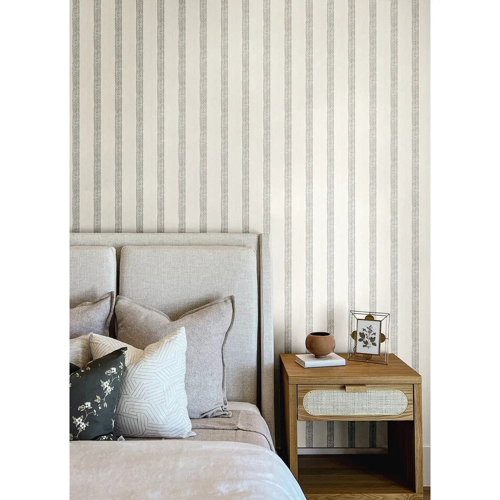 | Chesapeake PrintWorks | Mandevilla Aqua Vine Stripe Wallpaper Match: Random Page: 23 Repeat: 0 Washable Roll is 20.5 Inches in width and 33 Feet in Length With About 56.4 square feet Coverage Unpasted Strippable Paste the Wall Colors: Blues Transitional Stripes Graphics |