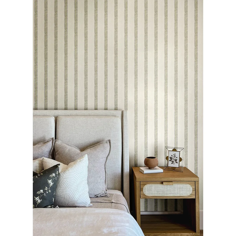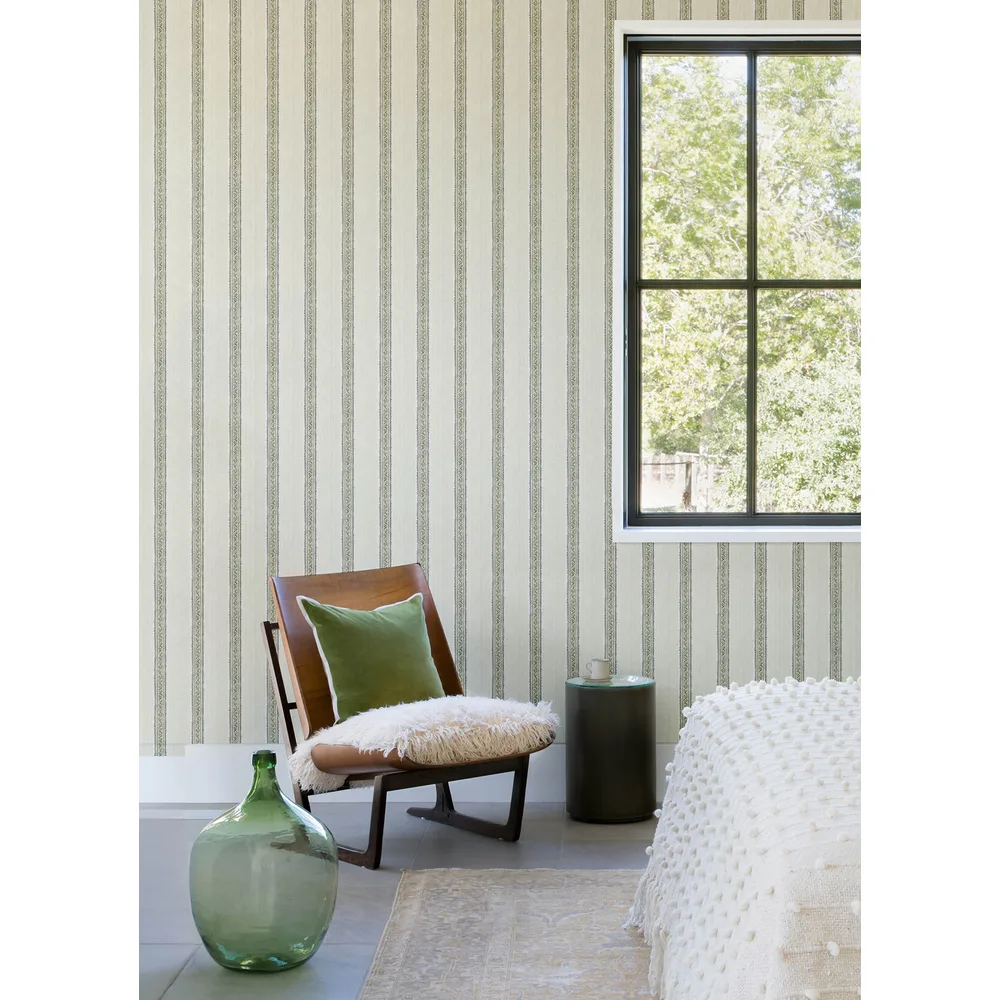 | Chesapeake PrintWorks | Mandevilla Green Vine Stripe Wallpaper Match: Random Page: 30 Repeat: 0 Washable Roll is 20.5 Inches in width and 33 Feet in Length With About 56.4 square feet Coverage Unpasted Strippable Paste the Wall Colors: Greens Transitional Stripes Graphics |
