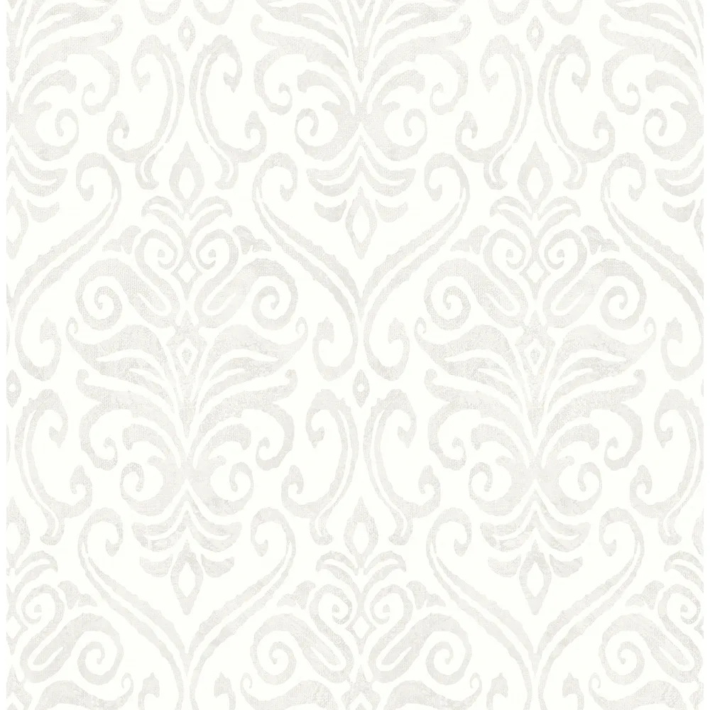 | Chesapeake PrintWorks | Adavu Dove Damask Wallpaper Match: Straight Page: 47 Repeat: 20.9 Washable Roll is 20.5 Inches in width and 33 Feet in Length With About 56.4 square feet Coverage Unpasted Strippable Paste the Wall Colors: Whites & Off-Whites Traditional Damask Graphics |