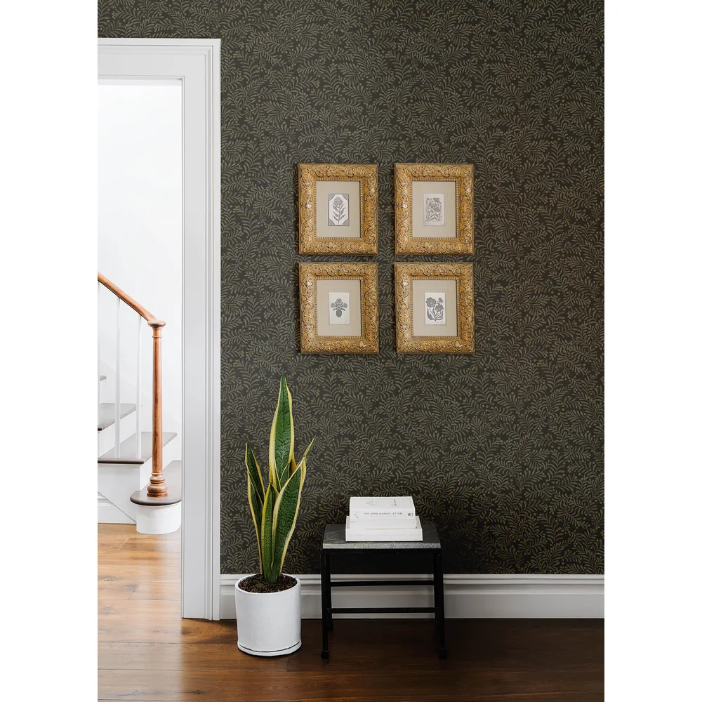 | Chesapeake PrintWorks | Chrysantha Black Berry Branches Wallpaper Match: Straight Page: 58 Repeat: 20.9 Washable Roll is 20.5 Inches in width and 33 Feet in Length With About 56.4 square feet Coverage Unpasted Strippable Paste the Wall Colors: Blacks Farmhouse Botanical Botanical |