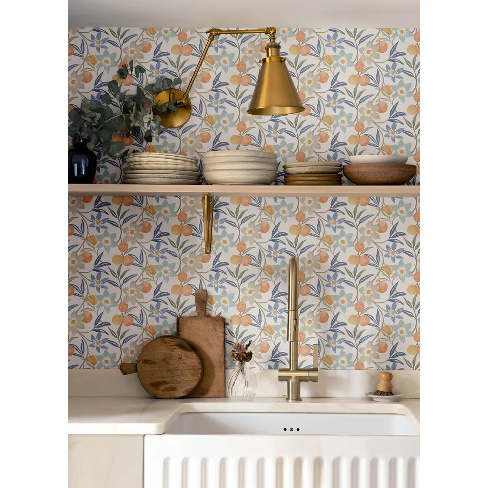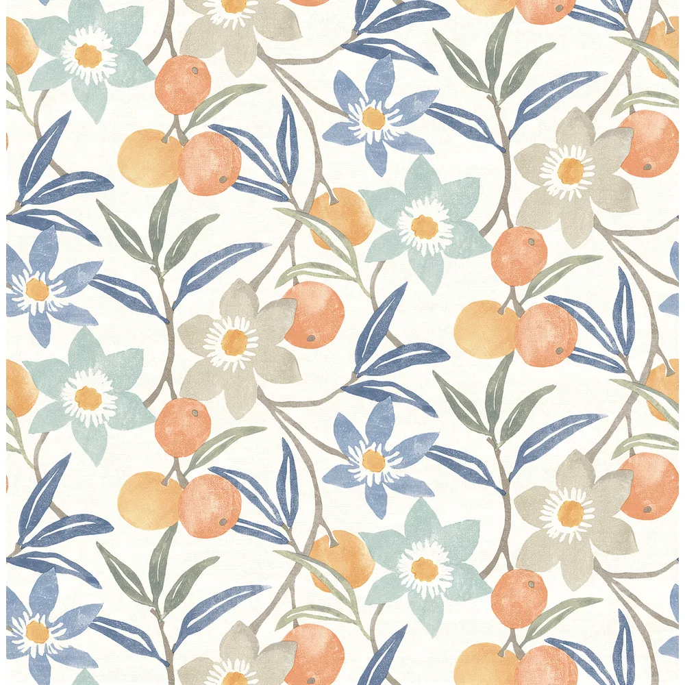 Chesapeake PrintWorks | Passiflora Blue Fruit and Floral Wallpaper