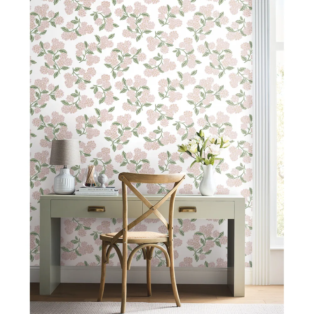 Rifle Paper Co. Rifle Paper Co P+S 4th Edition | Hydrangea Pink & White Peel & Stick Wallpaper