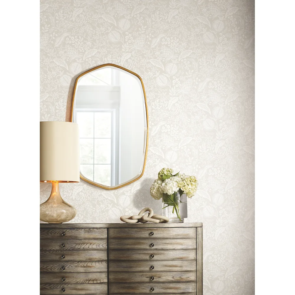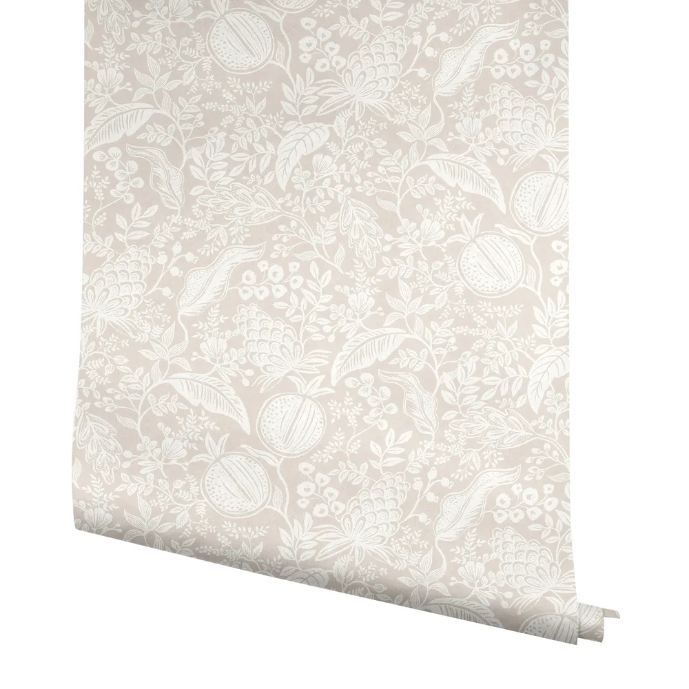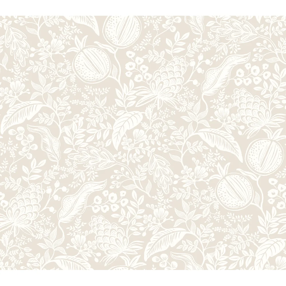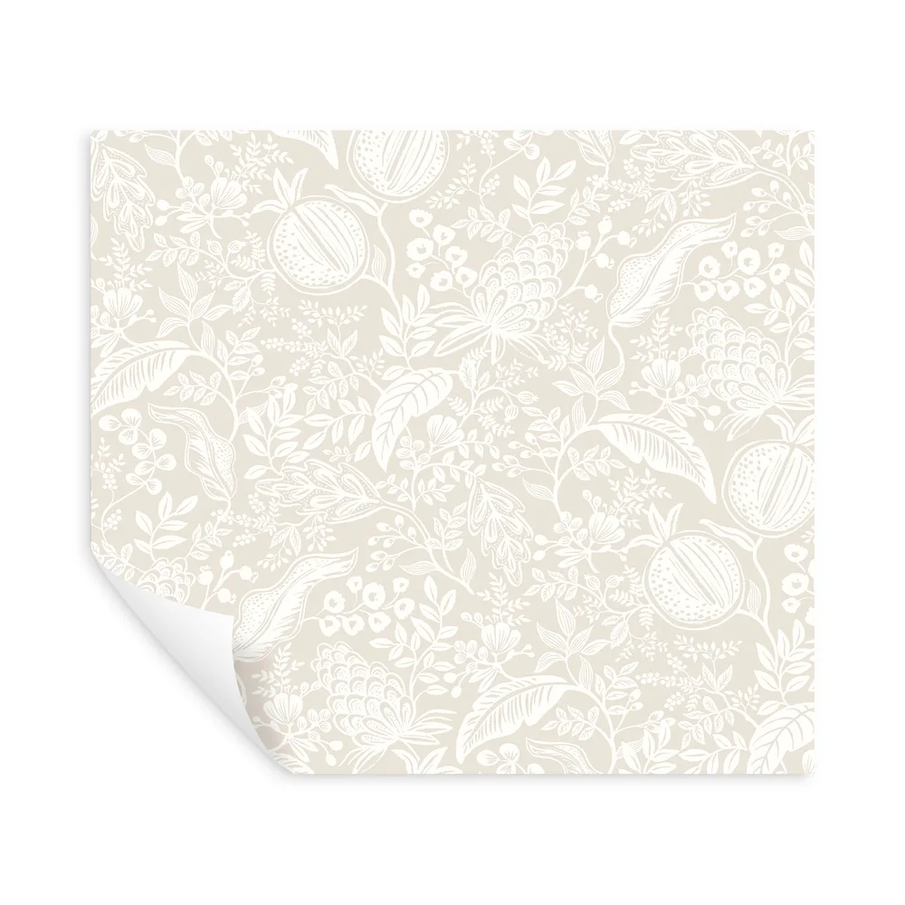 | Rifle Paper Co. Rifle Paper Co P+S 4th Edition | Pomegranate Beige & White Peel & Stick Wallpaper Match: Straight Repeat: 24 Washable Roll is 27 Inches in width and 20 Feet in Length With About 45 square feet Coverage Peel & Stick Fully Removable Peel & Stick Colors: Beiges Farmhouse Botanical |