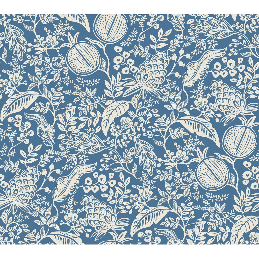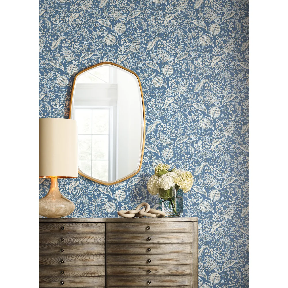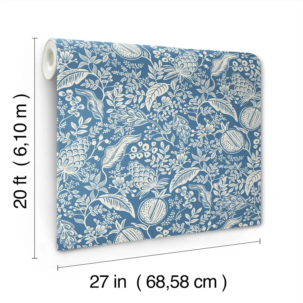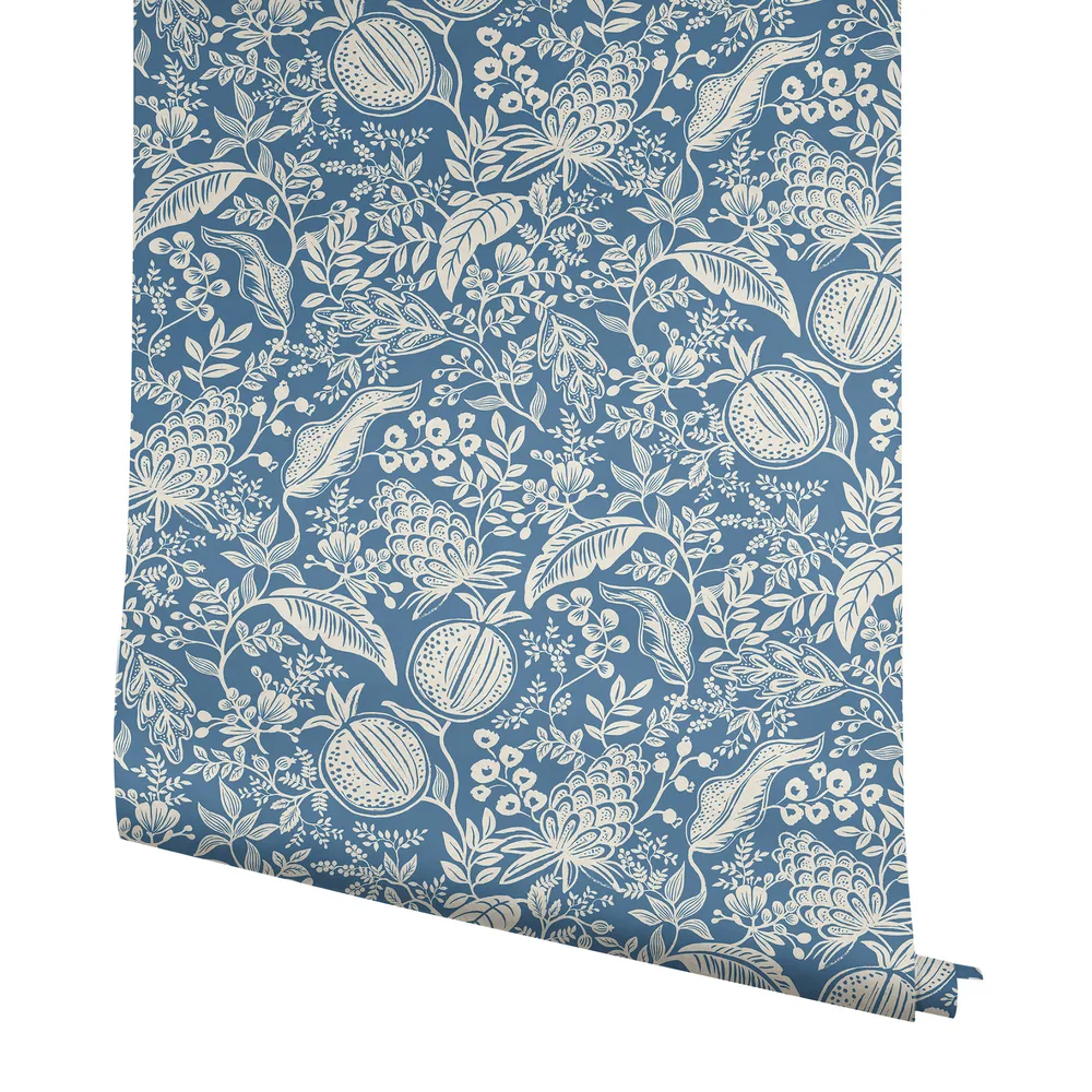 Rifle Paper Co. Rifle Paper Co P+S 4th Edition | Pomegranate Blue & Ivory Peel & Stick Wallpaper