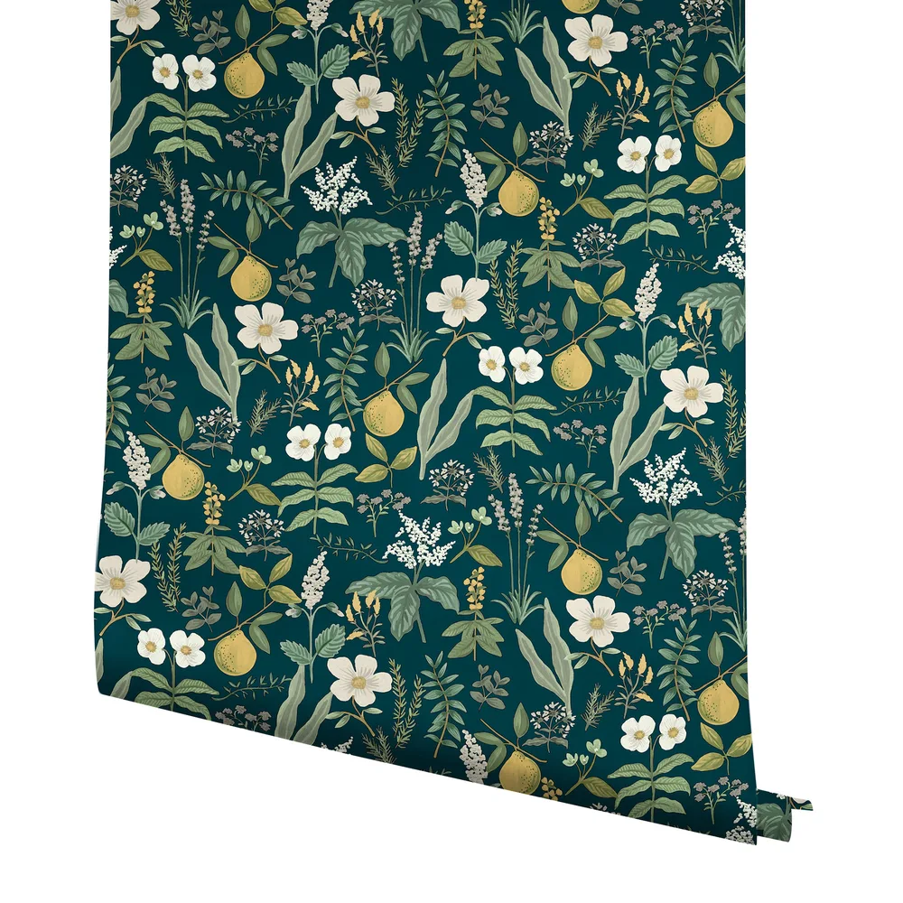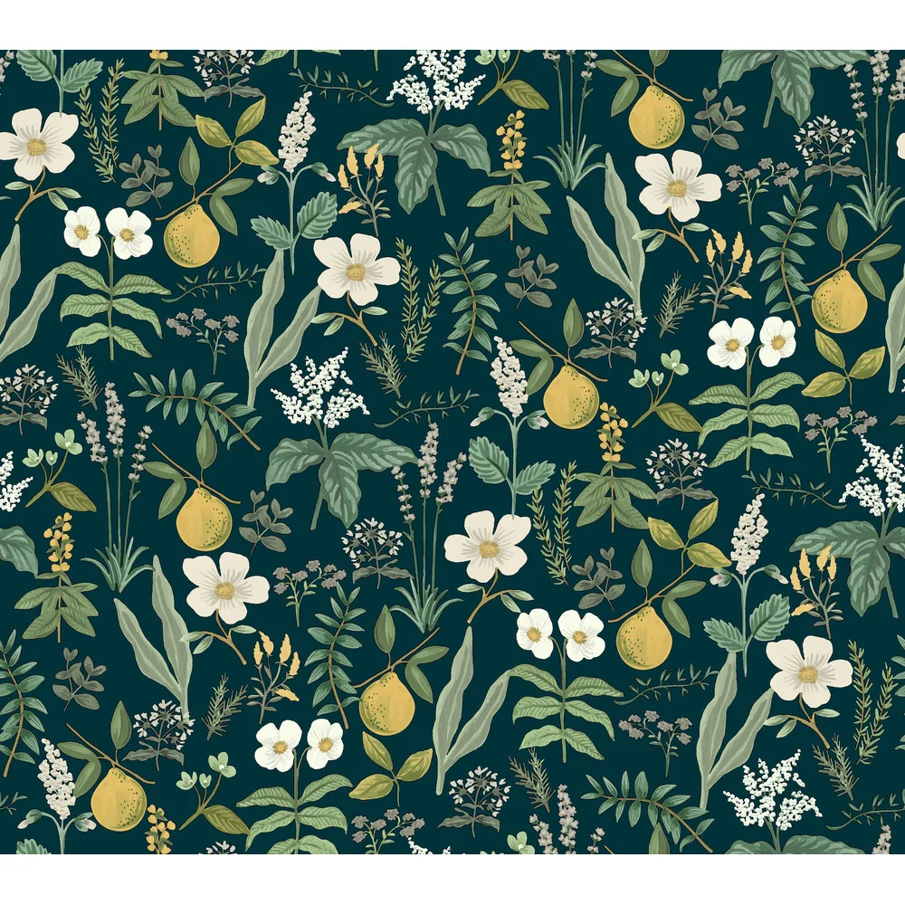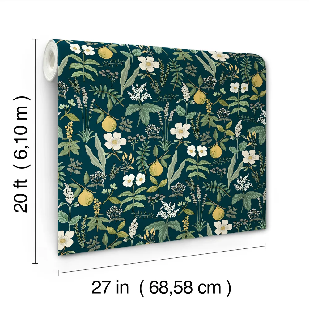 | Rifle Paper Co. Rifle Paper Co P+S 5th Edition | Herb Garden Navy Botanical Premium Peel + Stick Wallpaper Match: Straight Repeat: 24 Washable Roll is 27 Inches in width and 20 Feet in Length With About 45 square feet Coverage Peel & Stick Fully Removable Peel & Stick Colors: Blues Whimsical Fruit Botanical |
