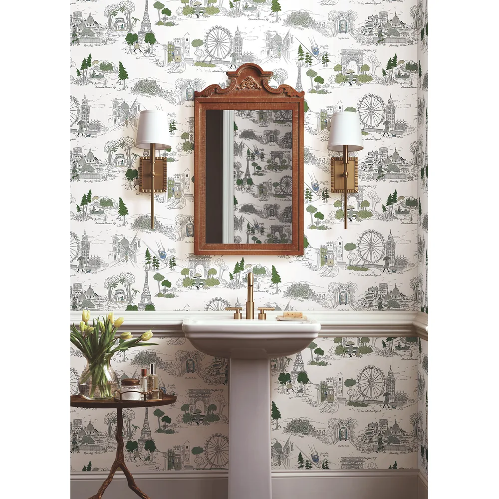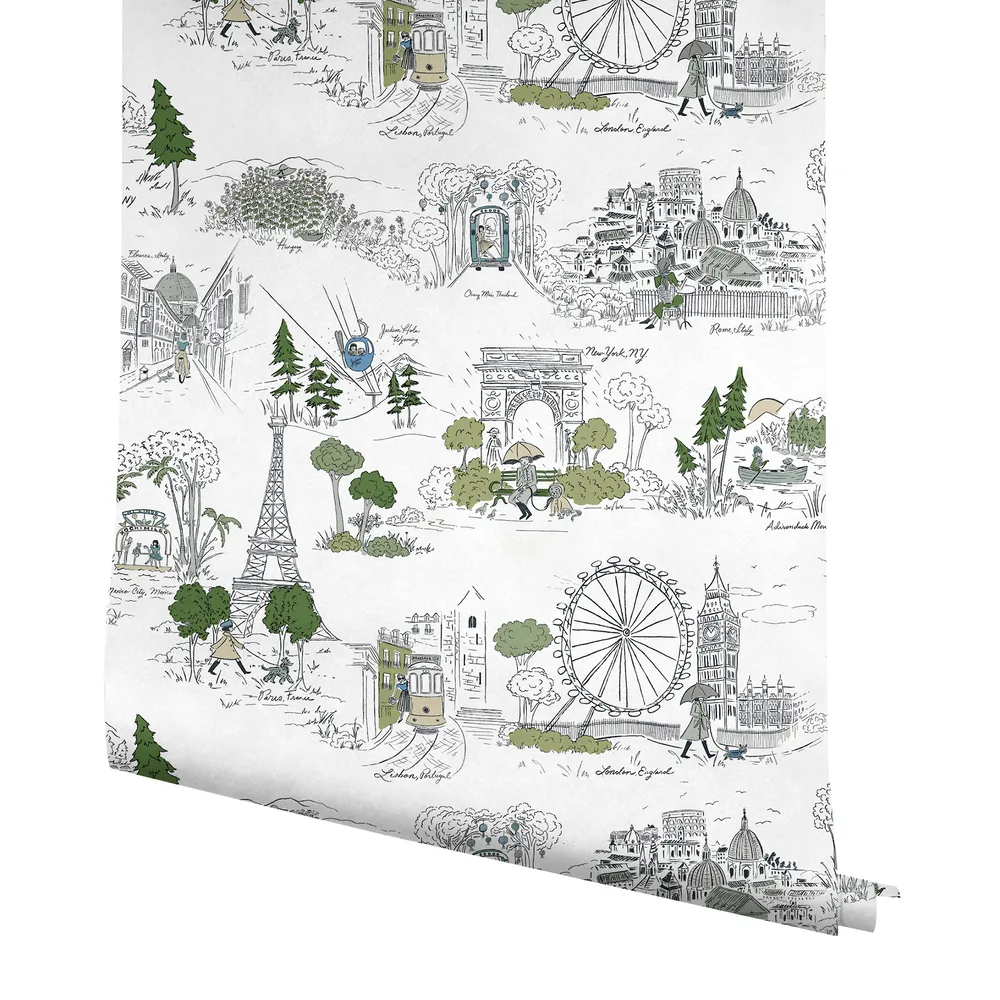 Rifle Paper Co. Rifle Paper Co P+S 5th Edition | Travel Sketches Blue Globetrotter Premium Peel + Stick Wallpaper