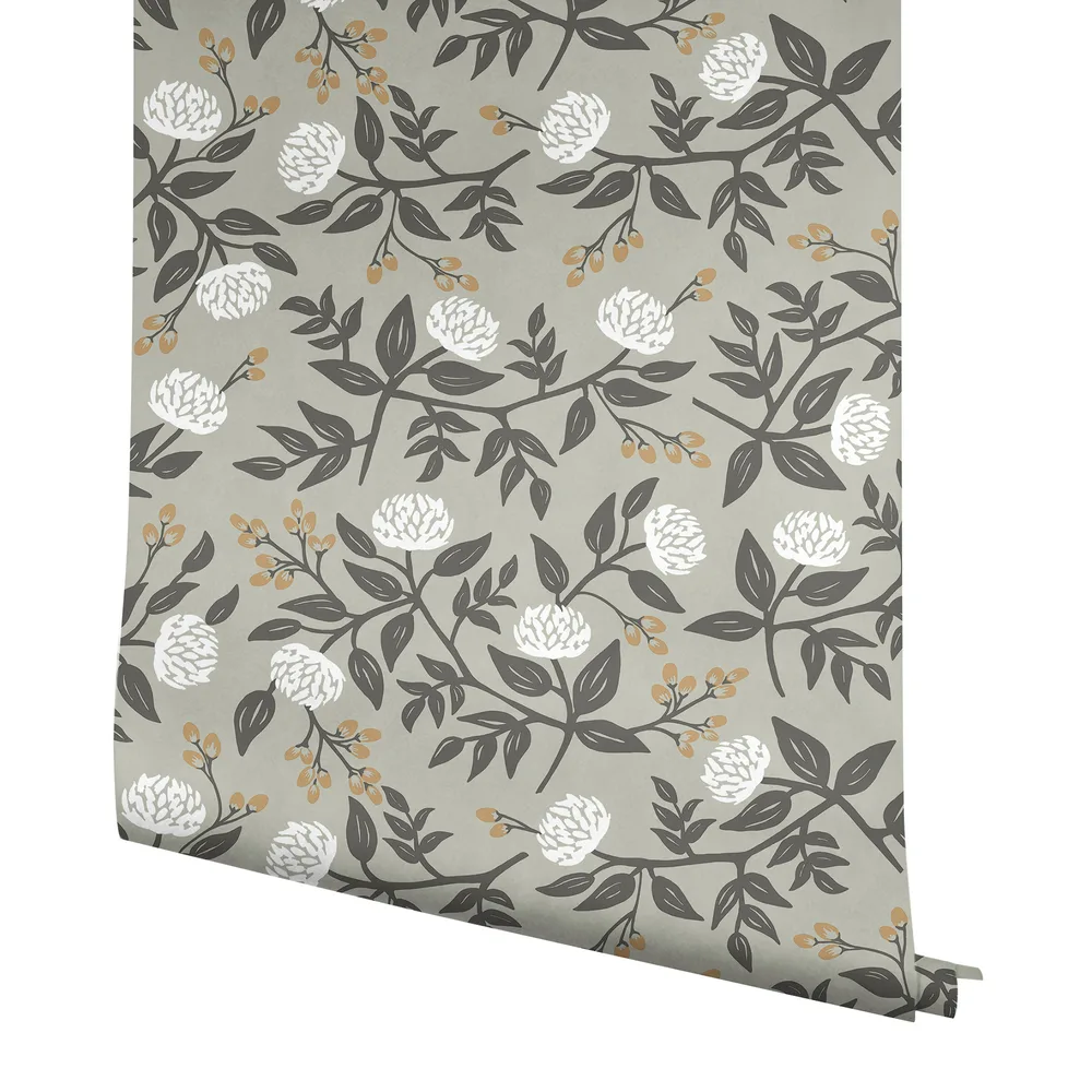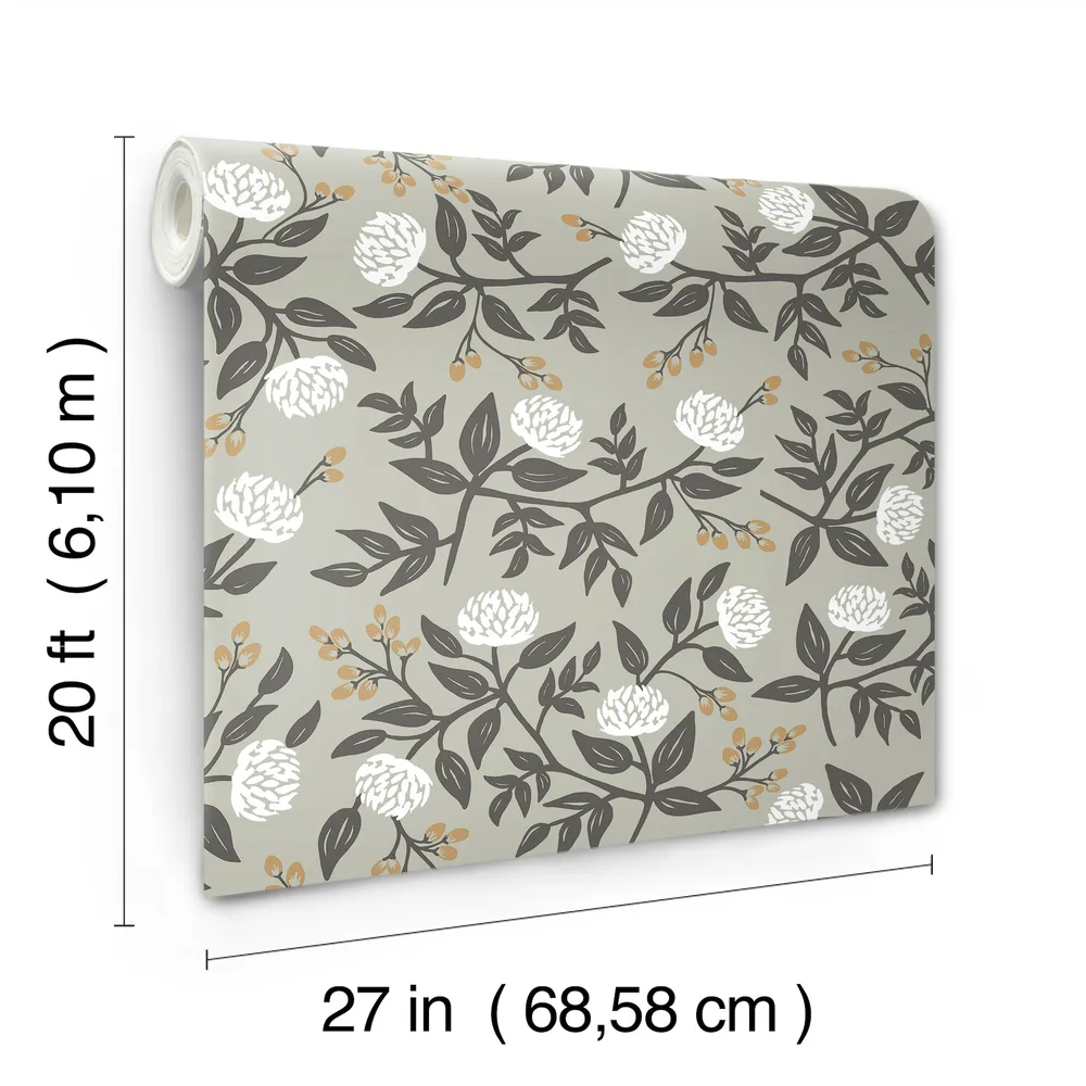 | Rifle Paper Co. Rifle Paper Co P+S 5th Edition | Peonies Grey Floral Premium Peel + Stick Wallpaper Match: Drop Repeat: 24 Washable Roll is 27 Inches in width and 20 Feet in Length With About 45 square feet Coverage Peel & Stick Fully Removable Peel & Stick Colors: Greys Modern Trails Botanical |