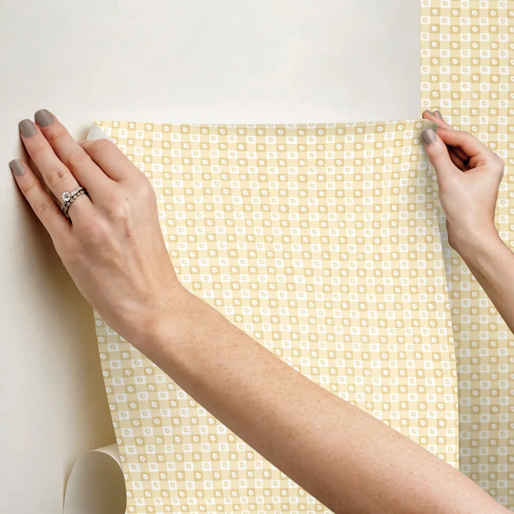 | Rifle Paper Co. Rifle Paper Co P+S 5th Edition | Daisy Gingham Yellow Floral Check Premium Peel + Stick Wallpaper Match: Straight Repeat: 24 Washable Roll is 27 Inches in width and 20 Feet in Length With About 45 square feet Coverage Peel & Stick Fully Removable Peel & Stick Colors: Yellows Whimsical Fabric Textures Graphics |