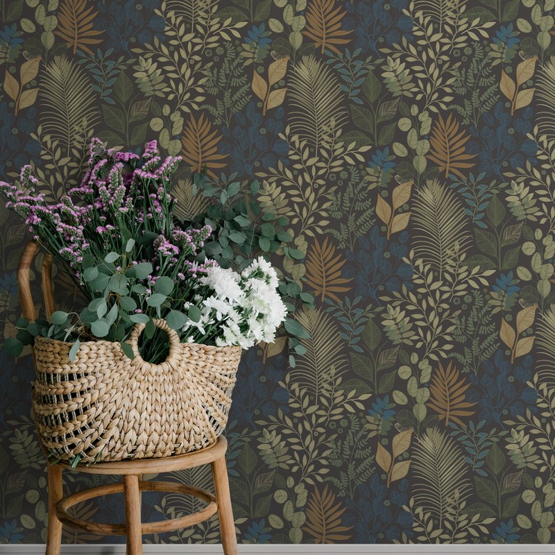 | A-Street Prints Savanna | Ängslycka Charcoal Forest Botanicals Wallpaper Match: Straight Page: 23 Repeat: 20.86 Washable Roll is 20.9 Inches in width and 33 Feet in Length With About 57.5 square feet Coverage Unpasted Strippable Paste the Wall Colors: Multicolor Modern Botanical Botanical |