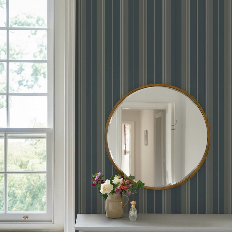 | A-Street Prints Savanna | Herrgård Navy Stripe Wallpaper Match: Random Page: 18 Repeat: 0 Washable Roll is 20.9 Inches in width and 33 Feet in Length With About 57.5 square feet Coverage Unpasted Strippable Paste the Wall Colors: Blues Traditional Stripes Graphics |