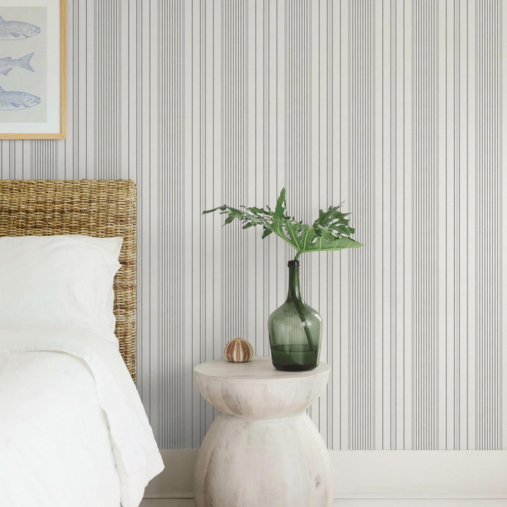 A-Street Prints Sea Salt | Navarres Stripe Charcoal Faux Linen Wallpaper