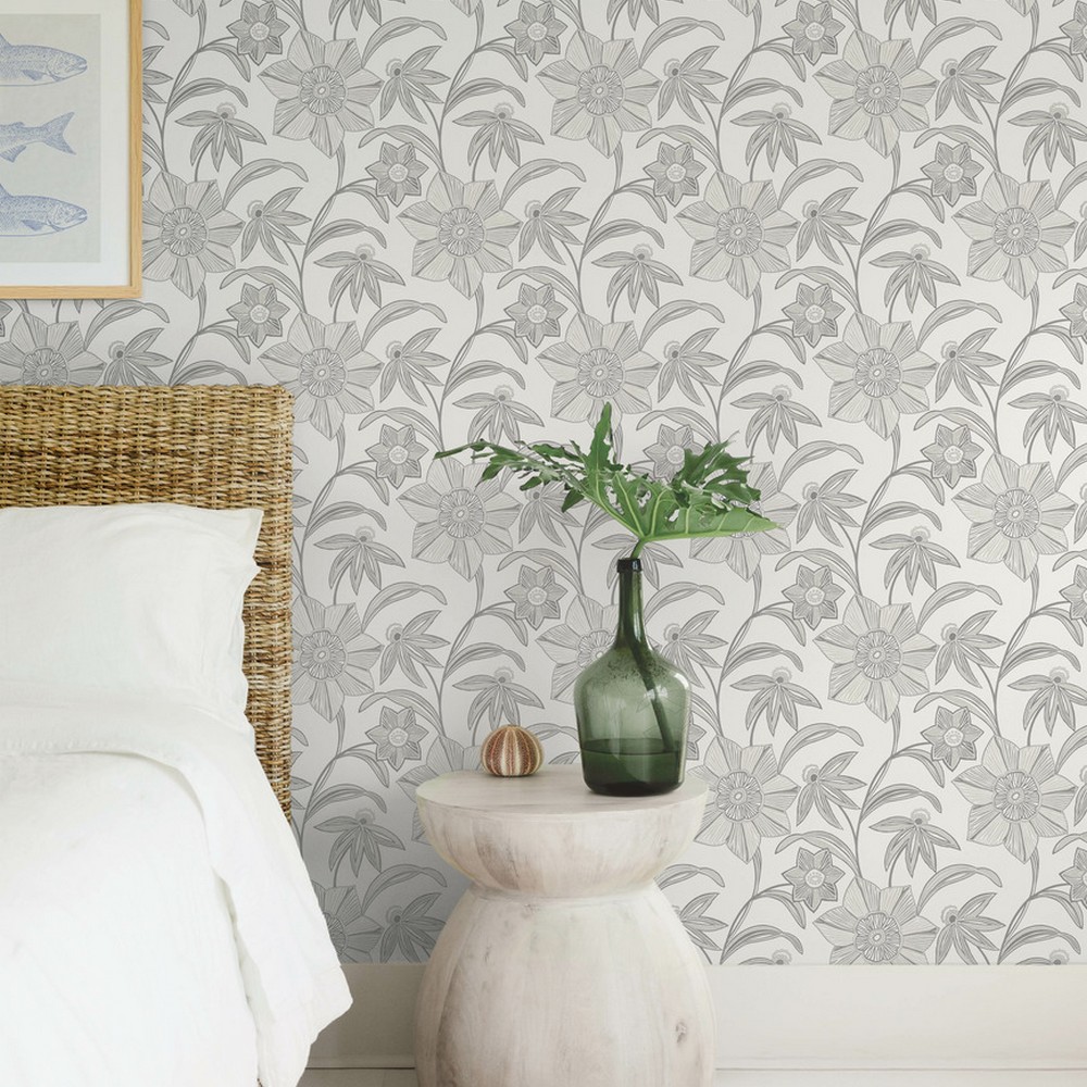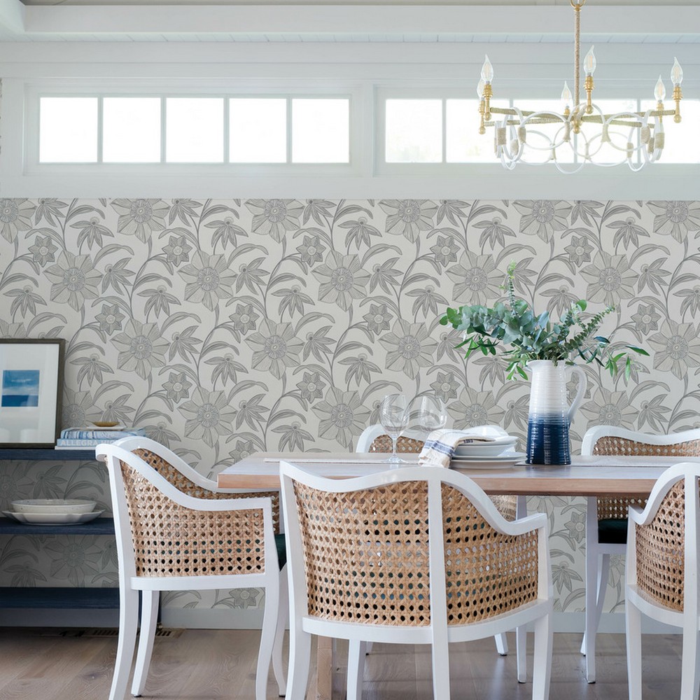 A-Street Prints Sea Salt | Star Flower Charcoal Floral Trail Wallpaper