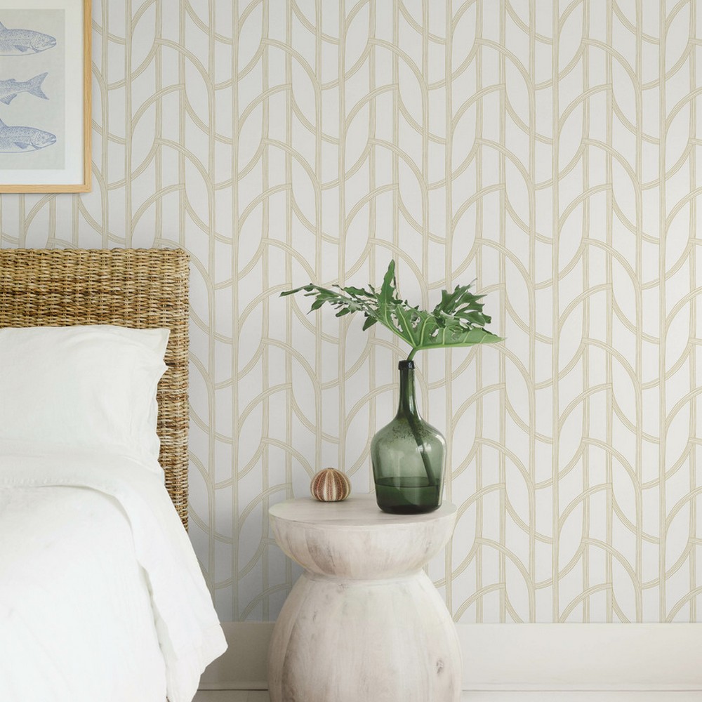 | A-Street Prints Sea Salt | Salvo Gold Curved Contours Wallpaper Match: Straight Page: 43 Repeat: 12.6 Washable Roll is 27 Inches in width and 27 Feet in Length With About 60.8 square feet Coverage Unpasted Strippable Paste the Wall Colors: Metallics Coastal Trellis Graphics |