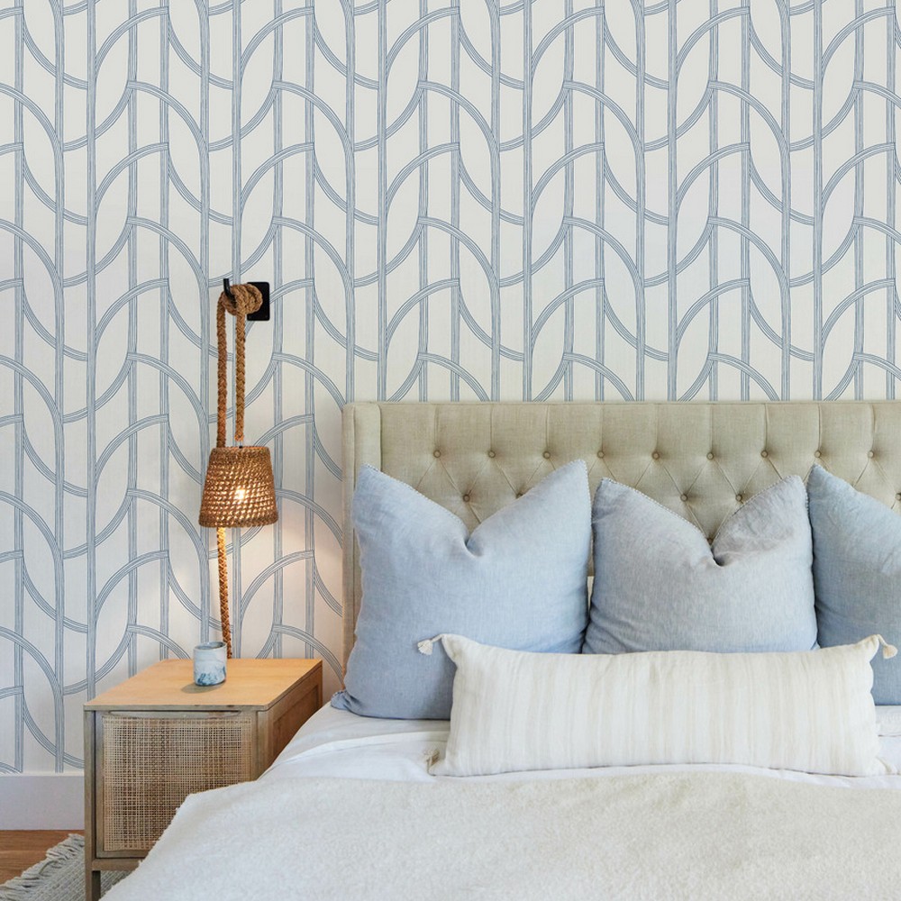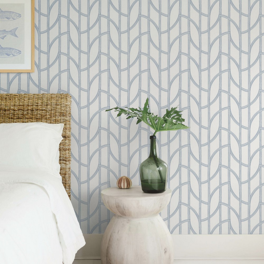 | A-Street Prints Sea Salt | Salvo Navy Curved Contours Wallpaper Match: Straight Page: 45 Repeat: 12.6 Washable Roll is 27 Inches in width and 27 Feet in Length With About 60.8 square feet Coverage Unpasted Strippable Paste the Wall Colors: Blues Coastal Trellis Graphics |