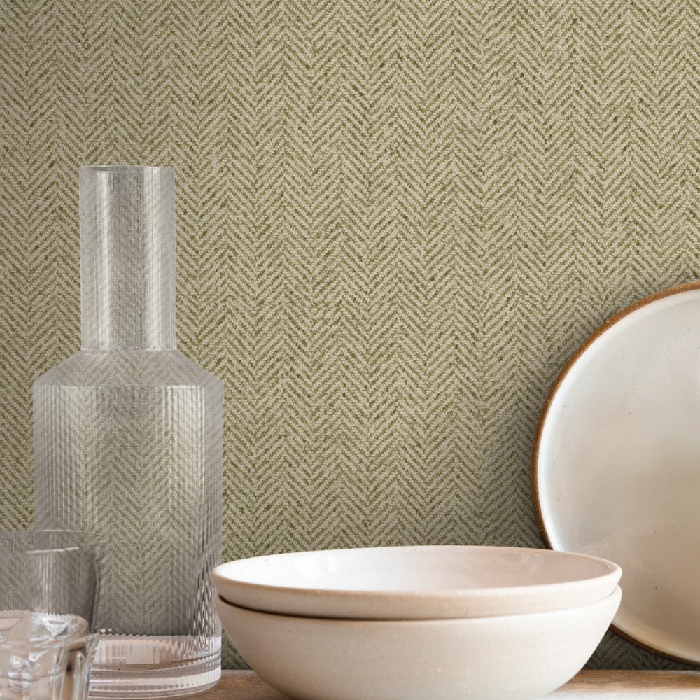 | York Wallcoverings Signature Textures 3 Tailored Chevron Green Wallpaper Match: Drop Repeat: 27.5 Scrubbable Roll is 20.9 Inches in width and 33 Feet in Length With About 57.3 square feet Coverage Unpasted Strippable Paste the Wall Colors: Greens Masculine Weaves |