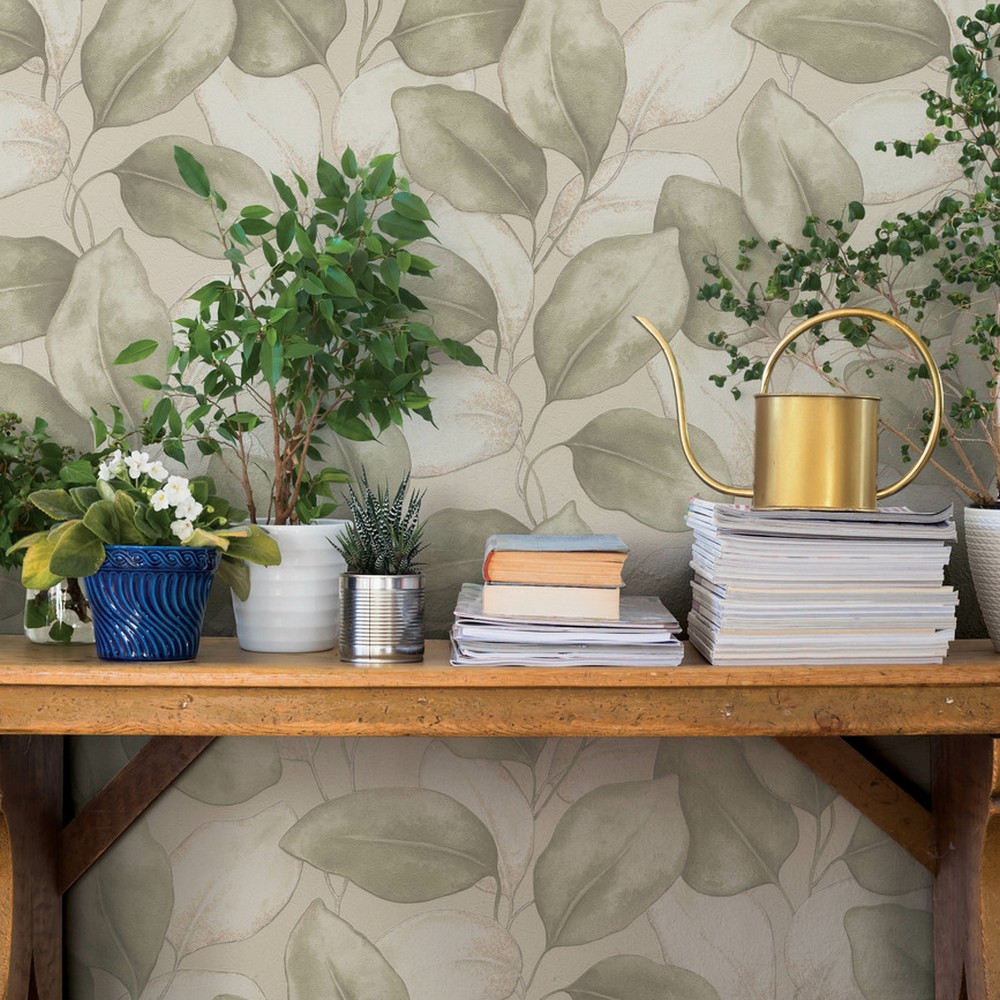 | A-Street Prints Springhill Evanthe Sage Vine Wallpaper Match: Drop Repeat: 12.6 Extra Washable Roll is 20.9 Inches in width and 33 Feet in Length With About 57.5 square feet Coverage Unpasted Strippable Paste the Wall Colors: Greens Modern Leaves Botanical |
