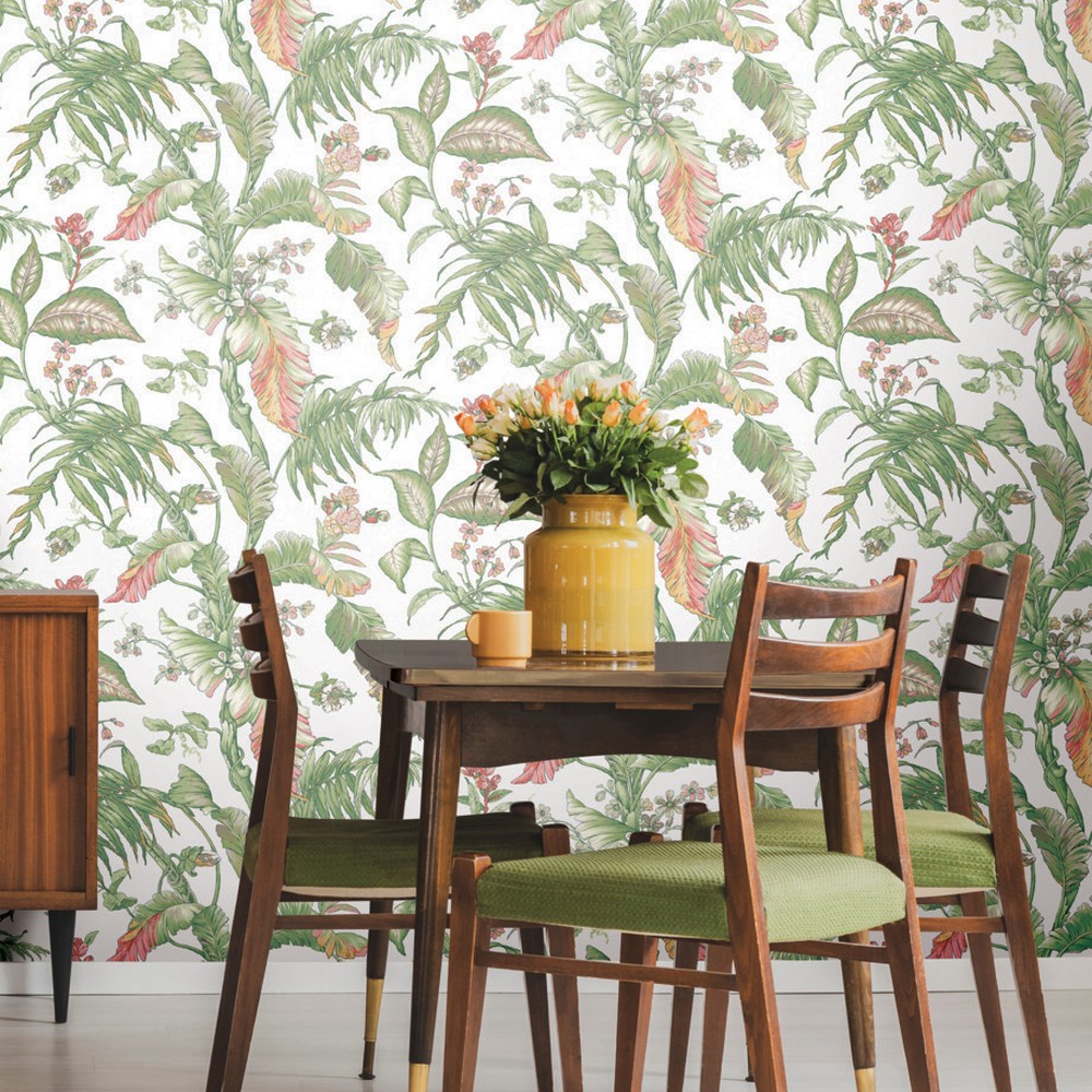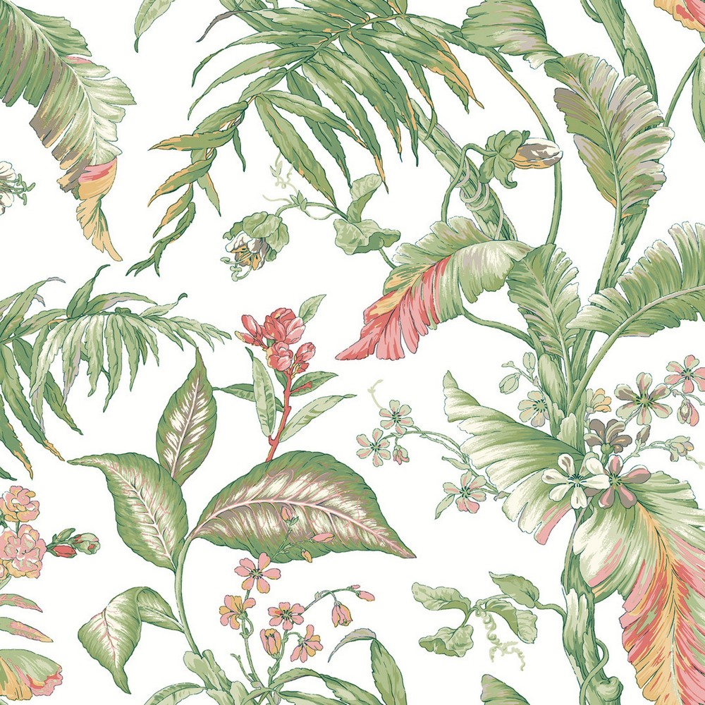 | York Wallcoverings Vintage Florals Fiji Garden Pink Peel & Stick Wallpaper Match: Drop Repeat: 24 Washable Roll is 27 Inches in width and 20 Feet in Length With About 45 square feet Coverage Peel & Stick Fully Removable Peel & Stick Colors: Multicolor Tropical |