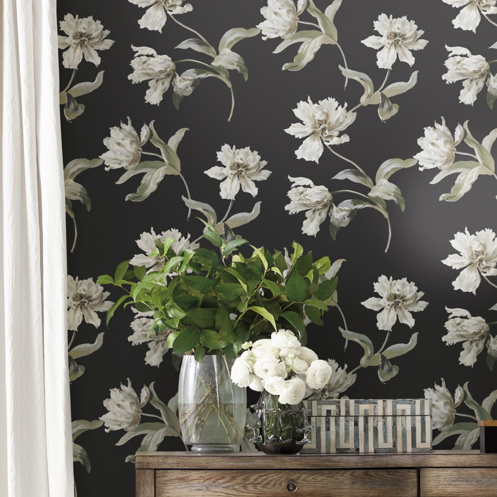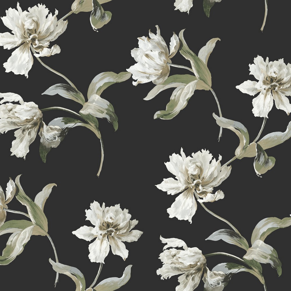 York Wallcoverings Vintage Florals Large Parrot Tulip Black Peel & Stick Wallpaper