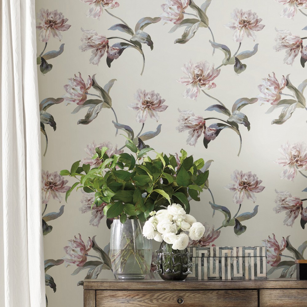 York Wallcoverings Vintage Florals Large Parrot Tulip Neutral Peel & Stick Wallpaper
