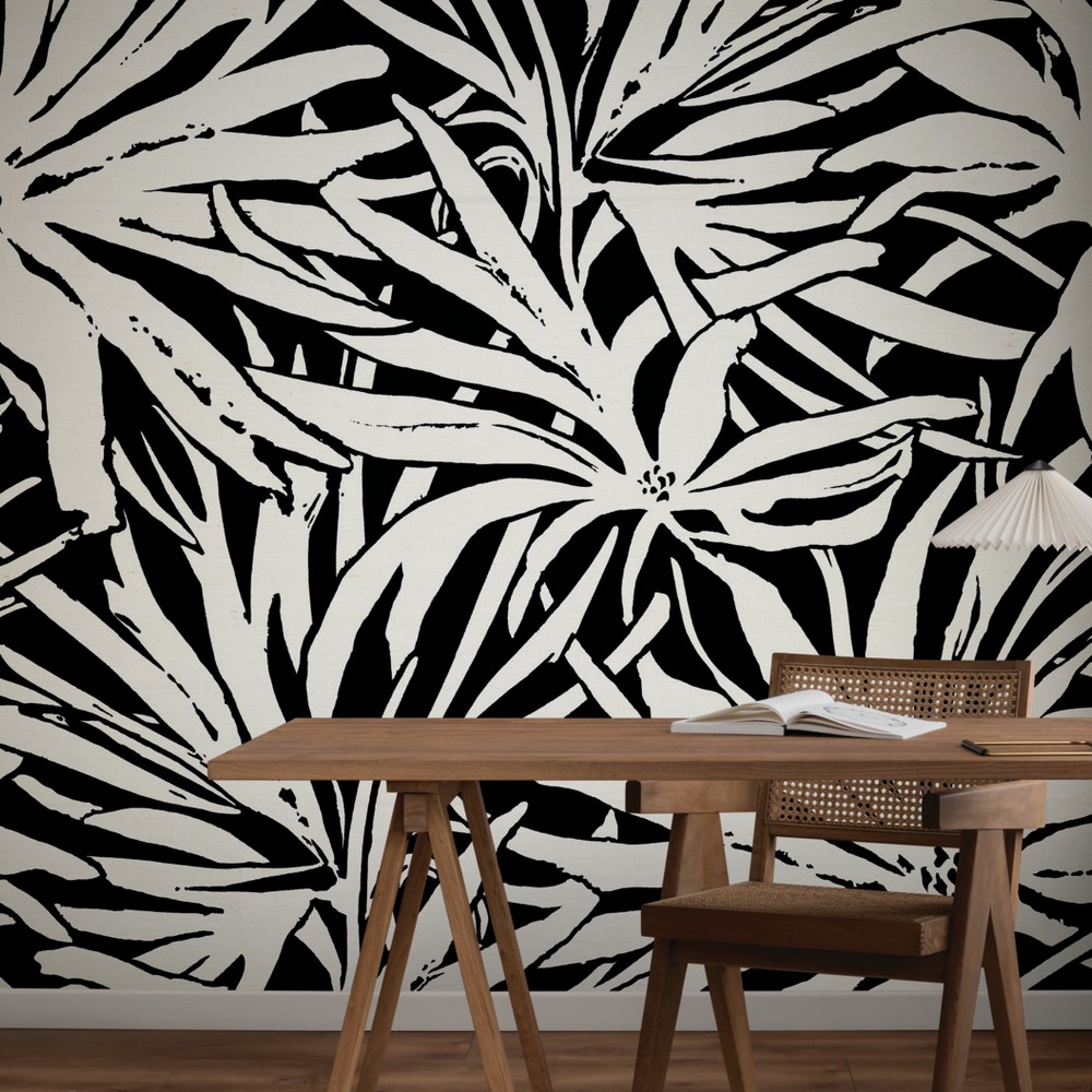 | York Wallcoverings Woodnote Floral Canopy Black Mural Dust and Vacuum Roll is 33.3 Inches in width and 10.2 Feet in Length With 3 panels - Measures 8.3-ft wide by 10.2-ft tall when assembled Coverage Unpasted Wet Removable Paste the Wall Colors: Blacks Feature Wall Florals |