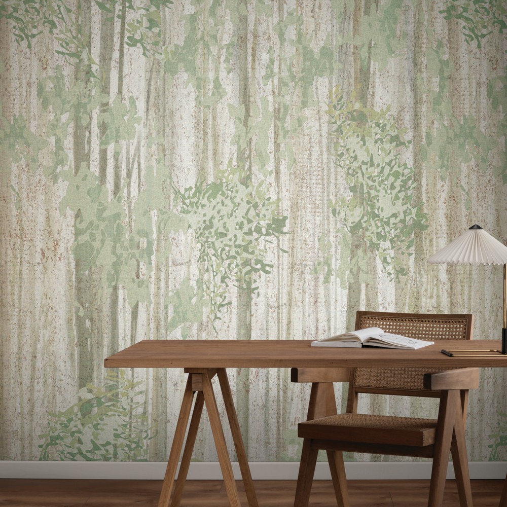 | York Wallcoverings Woodnote Aspen Grove Forest Mural Dust and Vacuum Roll is 33.3 Inches in width and 11.2 Feet in Length With 2 panels - Measures 5.5-ft wide by 11.2-ft tall when assembled Coverage Unpasted Wet Removable Paste the Paper Colors: Greens Feature Wall Botanical |