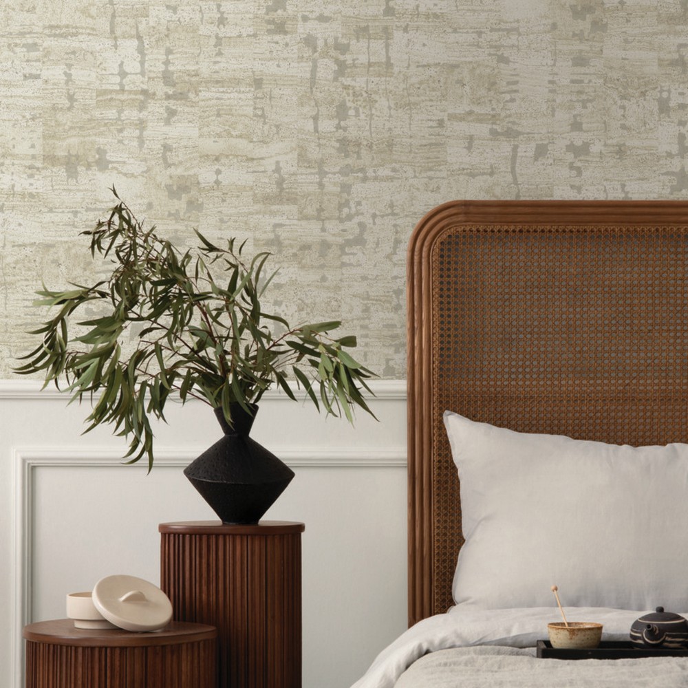 | York Wallcoverings Woodnote Pop The Cork Stone Wallpaper Match: Drop Repeat: 24 Spongeable Roll is 27 Inches in width and 27 Feet in Length With About 60.8 square feet Coverage Unpasted Wet Removable Paste the Wall Colors: Whites & Off-Whites Modern Cork |