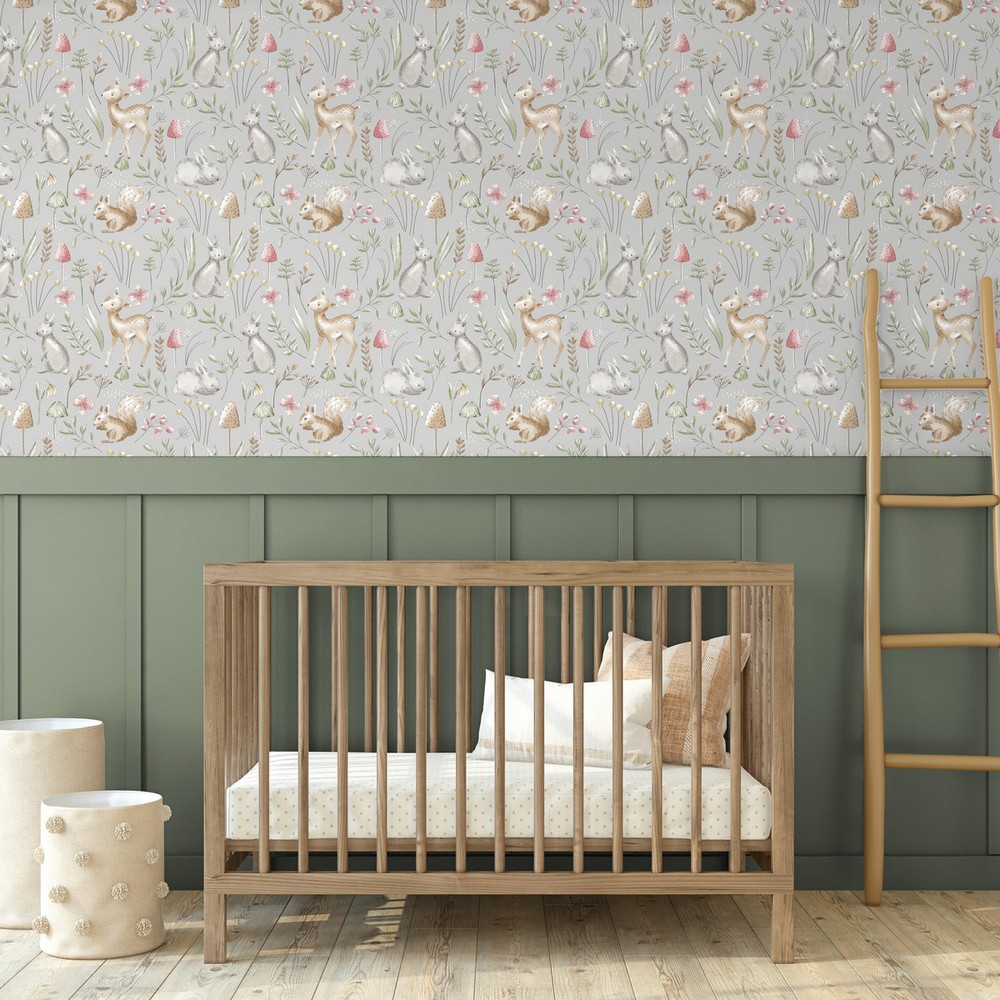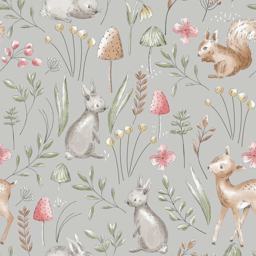 | Advantage World of Imagination Forest Animals Grey Whimsical Wallpaper Match: Straight Repeat: 20.9 Washable Roll is 20.5 Inches in width and 33 Feet in Length With About 56.4 square feet Coverage Unpasted Strippable Paste the Wall Colors: Greys Kids Animals Animals |