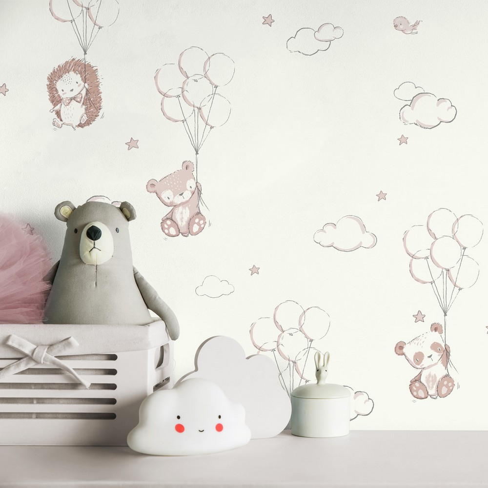 | Advantage World of Imagination Floating Balloons Pink Animal Wallpaper Match: Straight Repeat: 20.9 Washable Roll is 20.5 Inches in width and 33 Feet in Length With About 56.4 square feet Coverage Unpasted Strippable Paste the Wall Colors: Pinks Kids Animals Animals |