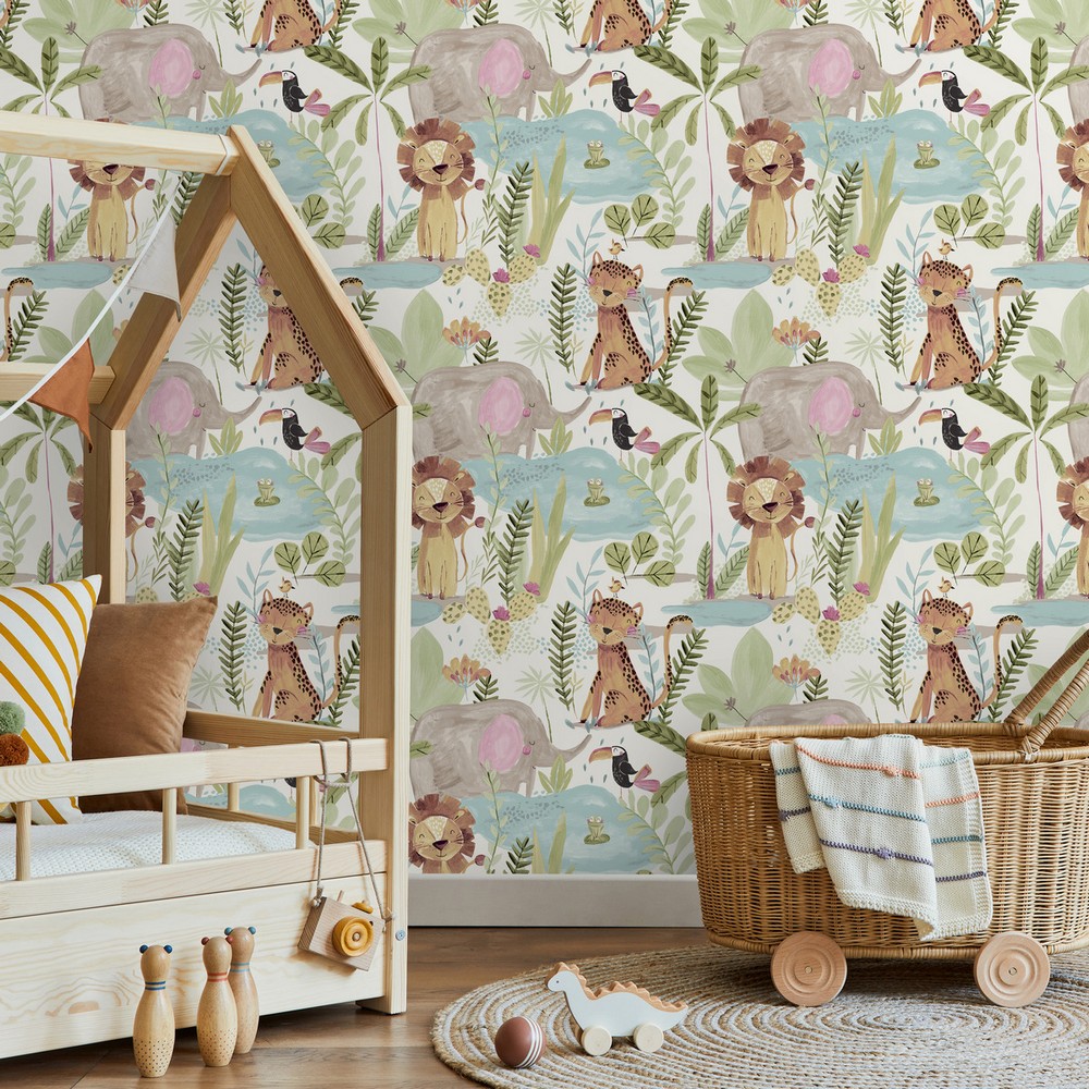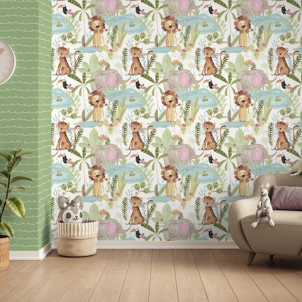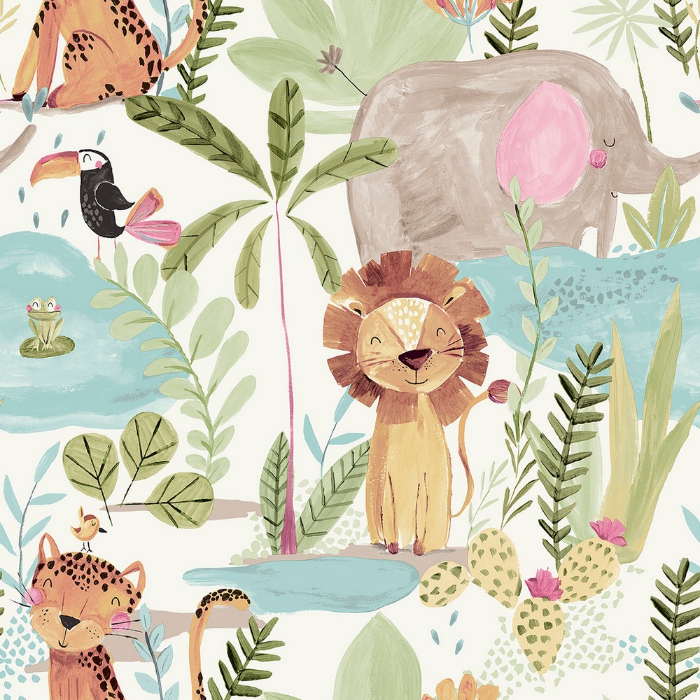 | Advantage World of Imagination In The Jungle Multicolor Animal Friends Wallpaper Match: Straight Repeat: 20.9 Washable Roll is 20.5 Inches in width and 33 Feet in Length With About 56.4 square feet Coverage Unpasted Strippable Paste the Wall Colors: Multicolor Kids Animals Animals |